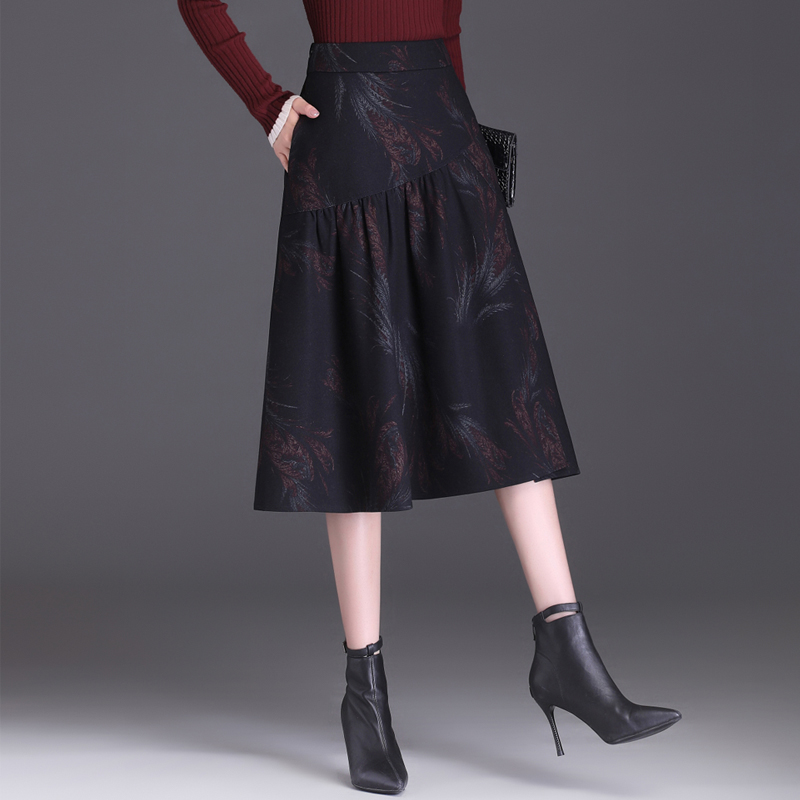 花色半身裙复古提花裙子女大码 显瘦包臀a字裙秋冬女高腰短裙 修身