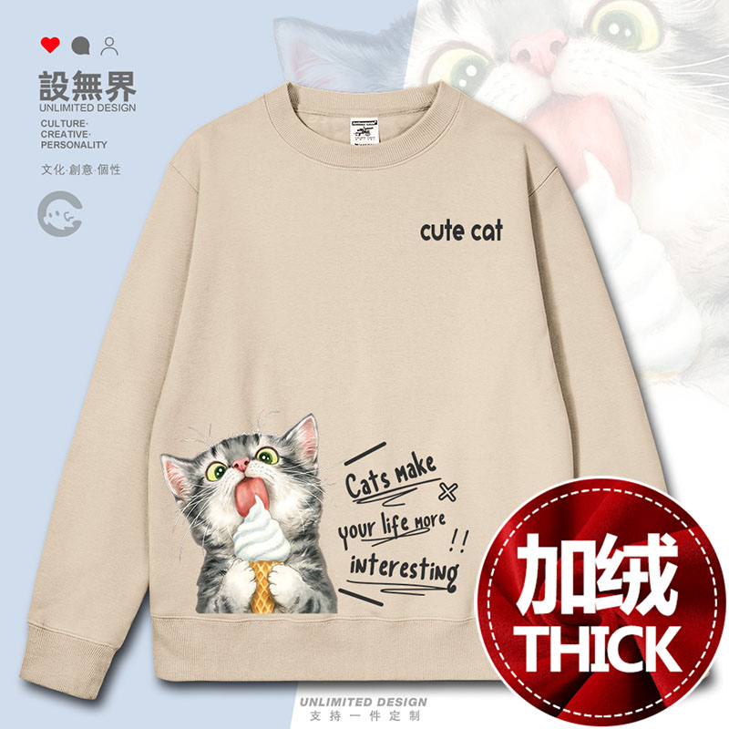 无界 趣味连帽卫衣男女潮0017设 日系元 气冰淇淋猫咪美短吃货个性