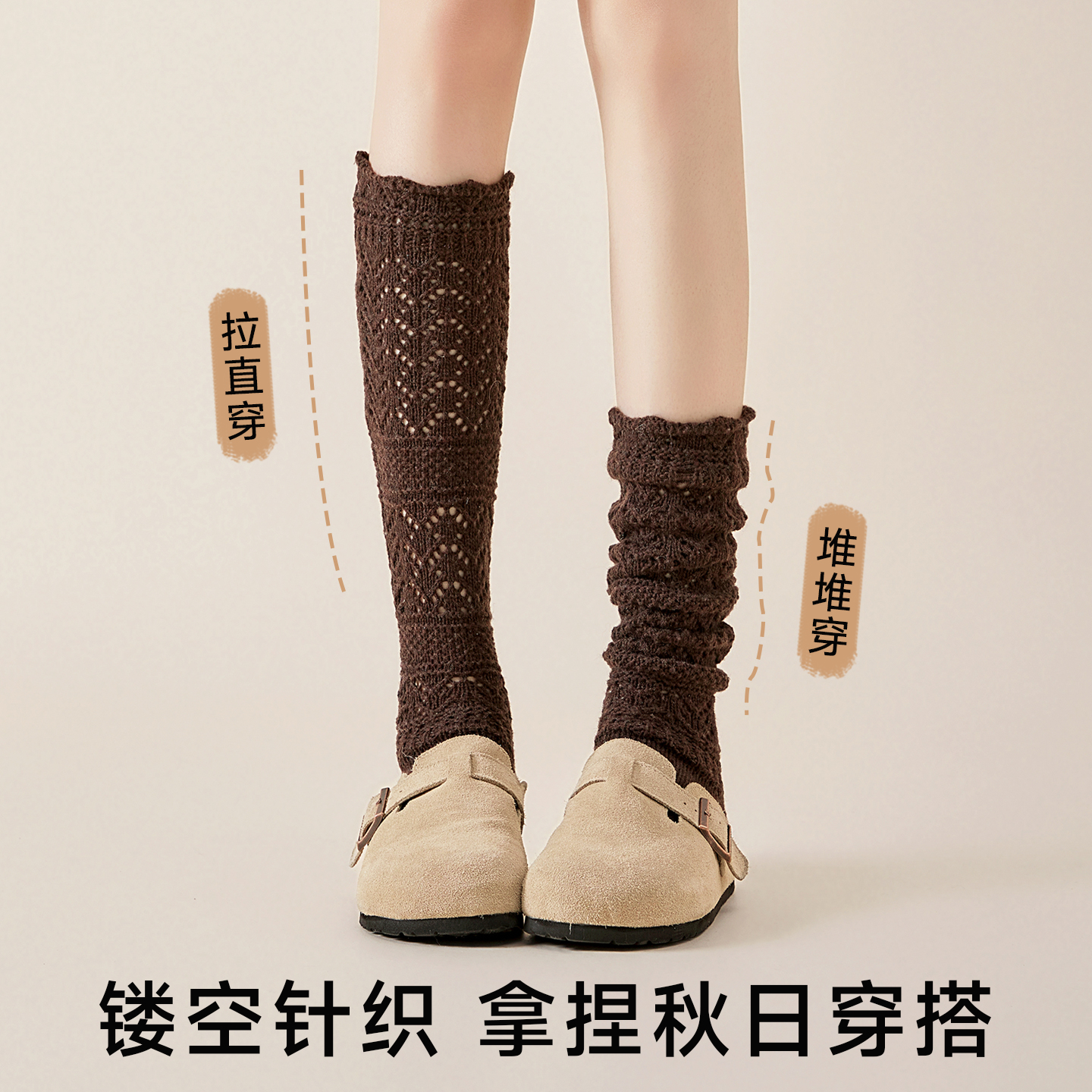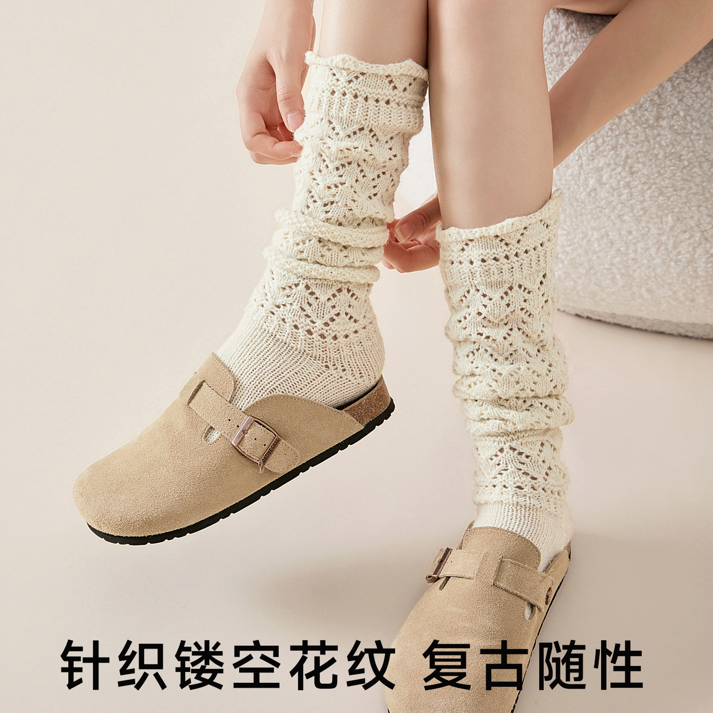 白色无骨秋冬堆堆袜 中筒袜纯棉月子袜2025新款 100%棉袜子女款 秋季