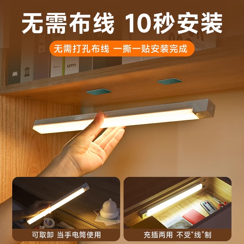 智能人体感应灯楼梯道自动声光控衣柜橱柜夜间无线充电led小夜灯