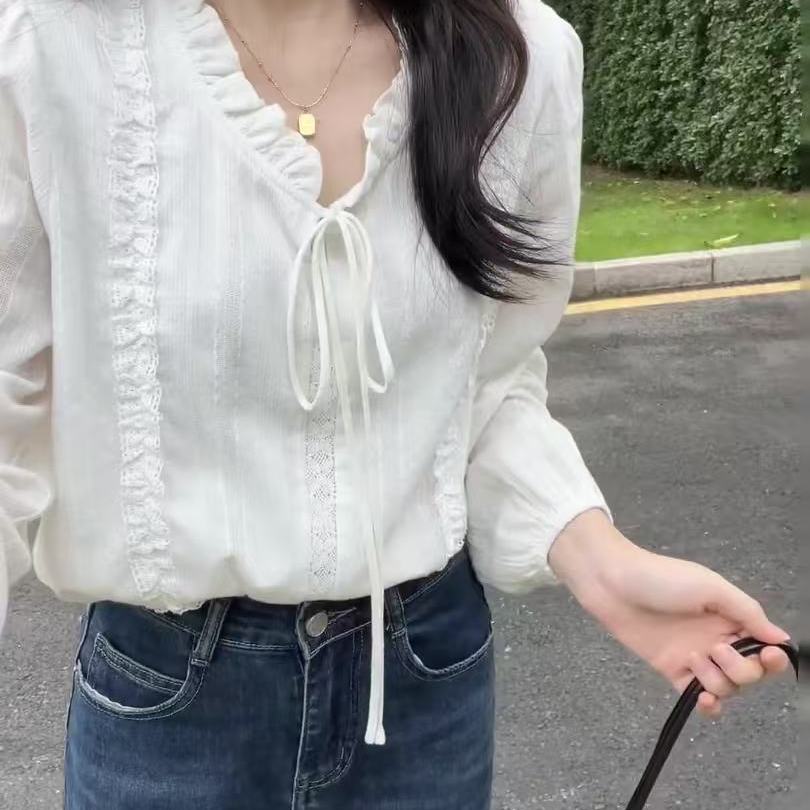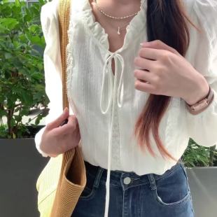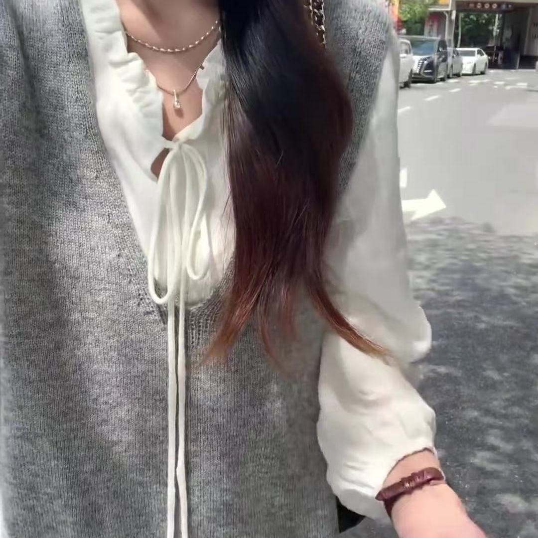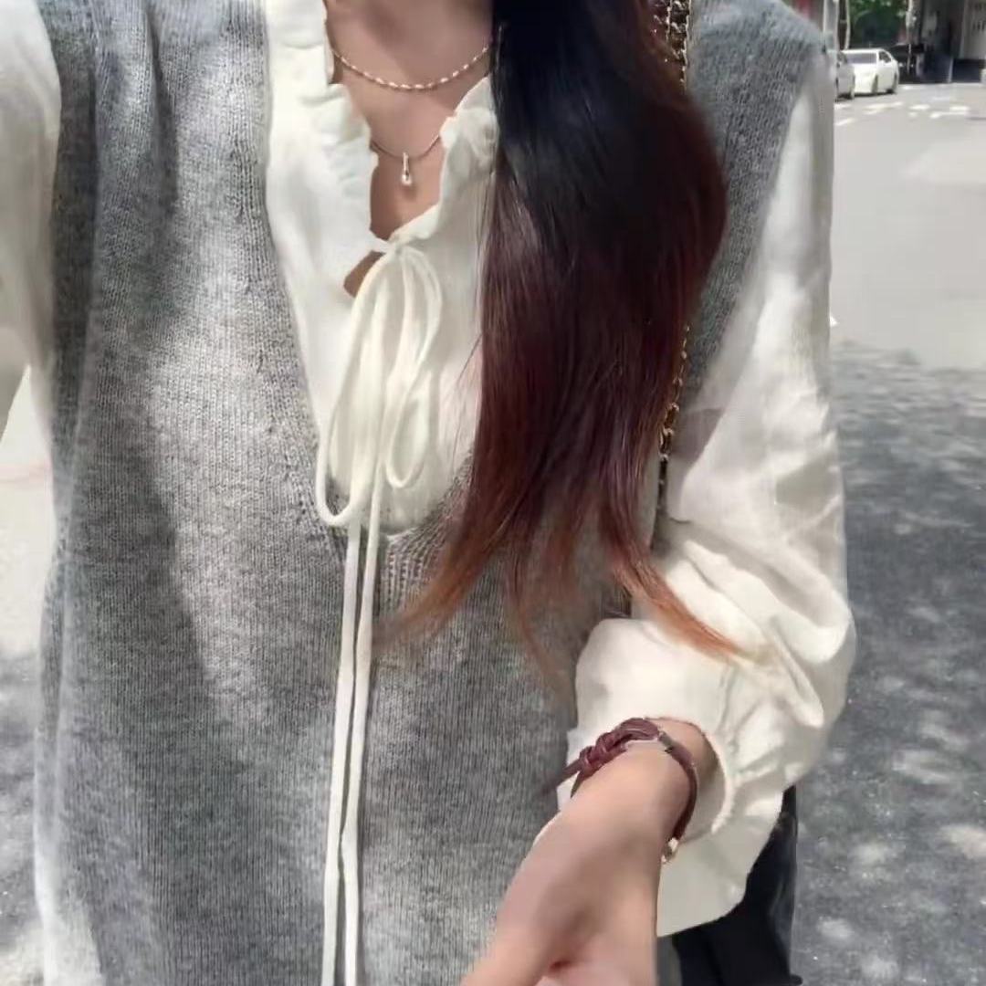 气质上衣叠穿坎肩马甲套装 新款 女2025秋季 韩系漂亮温柔风系带衬衫