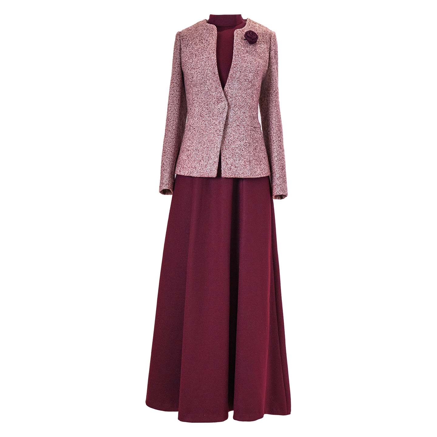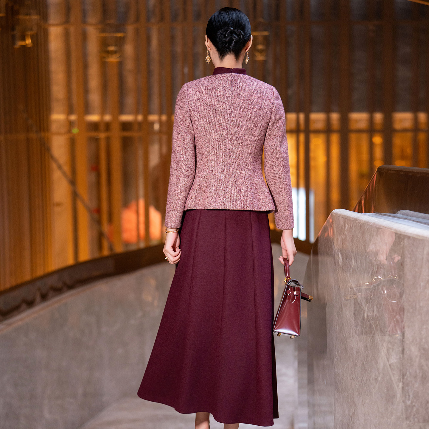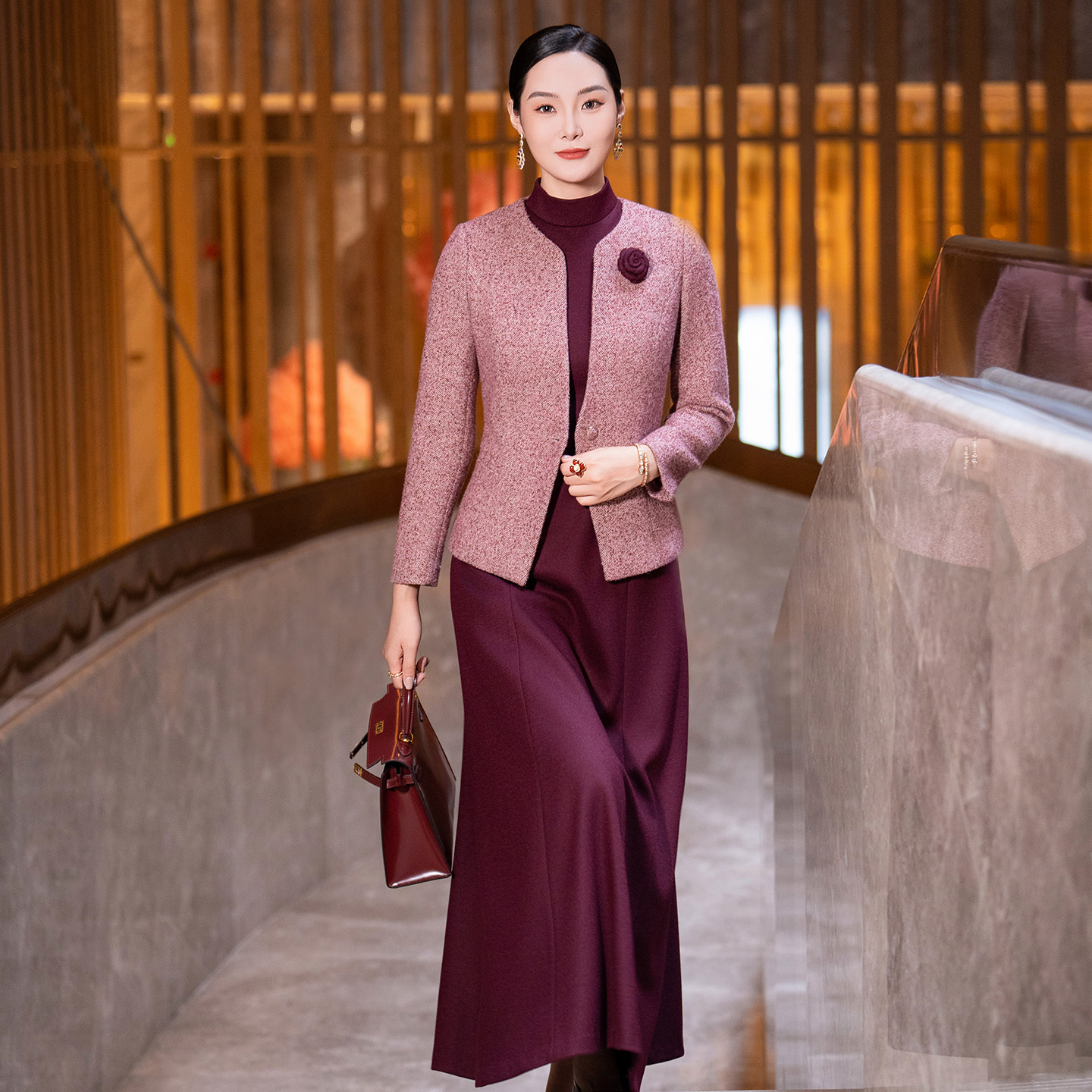 复古高端螺纹毛呢外套职业包臀裙 新款 菲梦伊原创小香风套装 女秋季