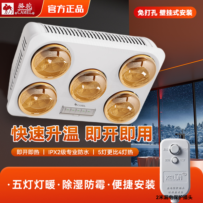 骆驼壁挂式 卫生间浴室取暖防水防爆灯泡 浴霸免打孔灯暖风暖挂墙式