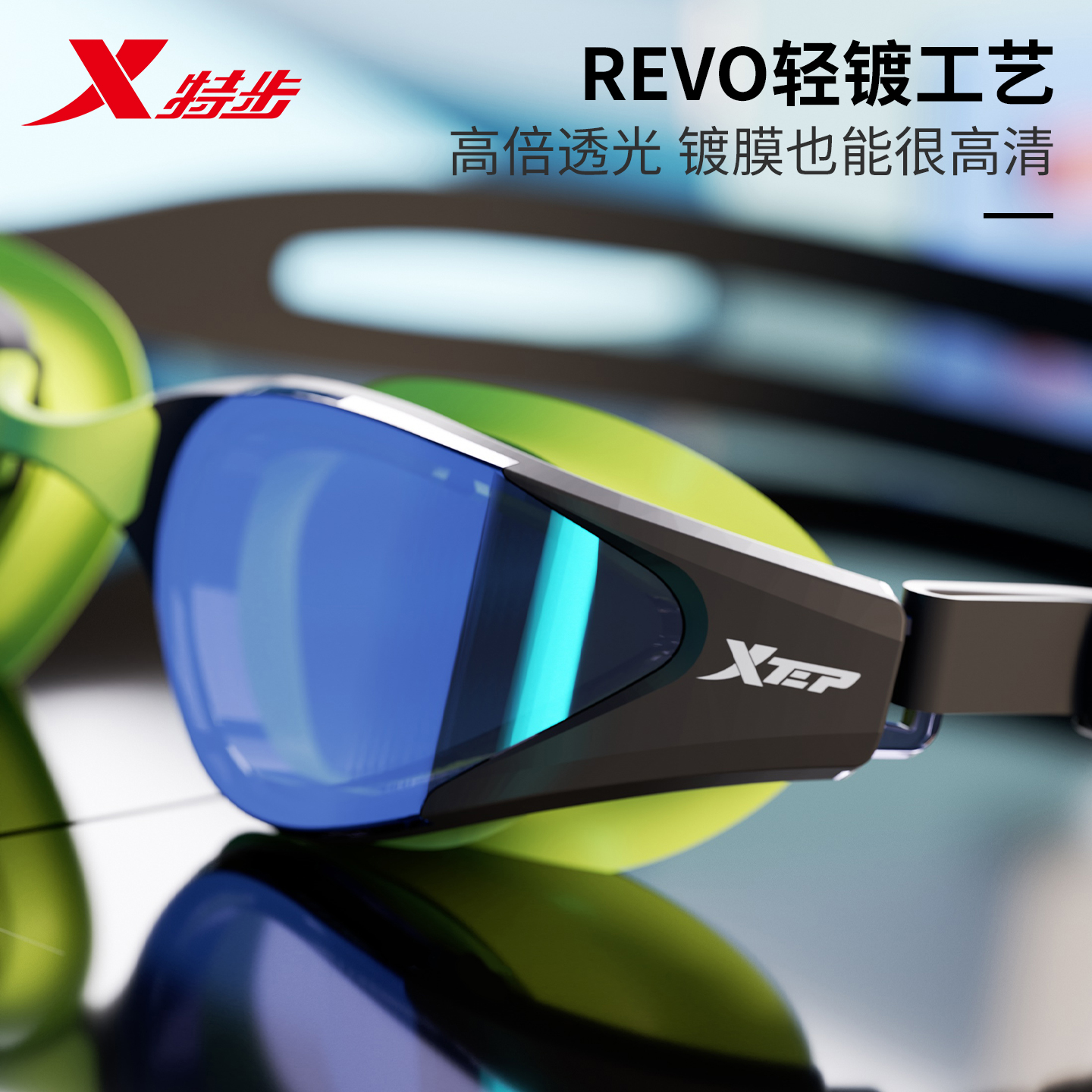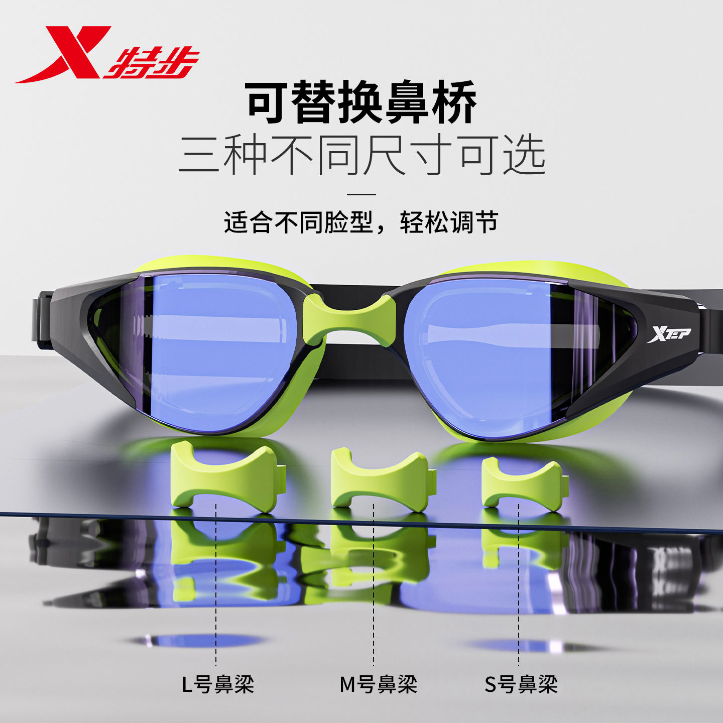 特步泳镜男款 高清防雾防水竞速电镀近视带度数中框女士游泳眼镜
