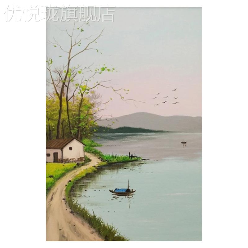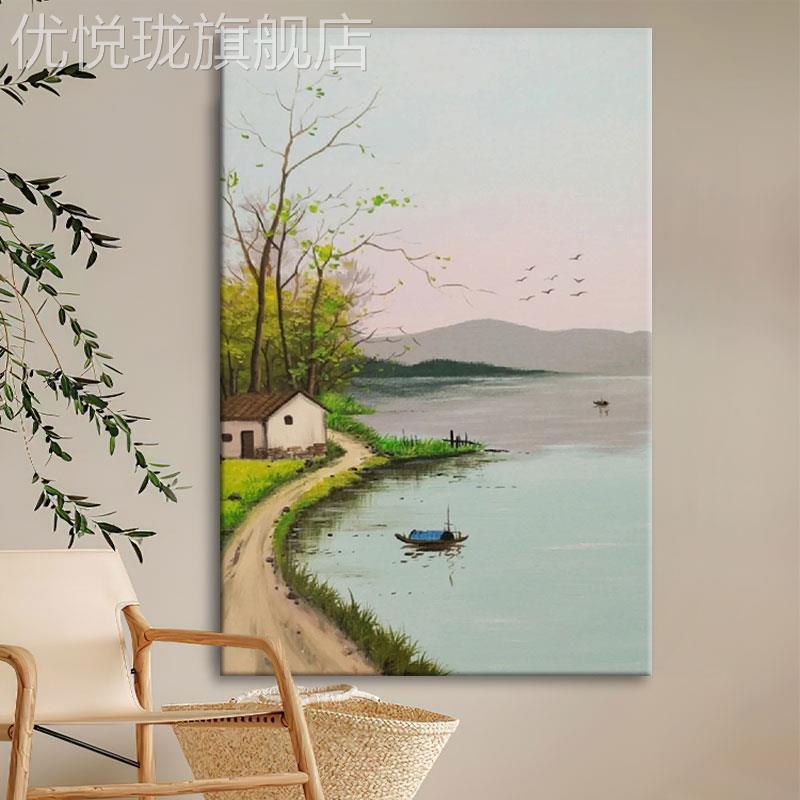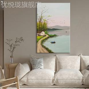 网红新中田园风景式 饰画客厅玄关油挂画丙山烯 纯手绘画湖边理水装