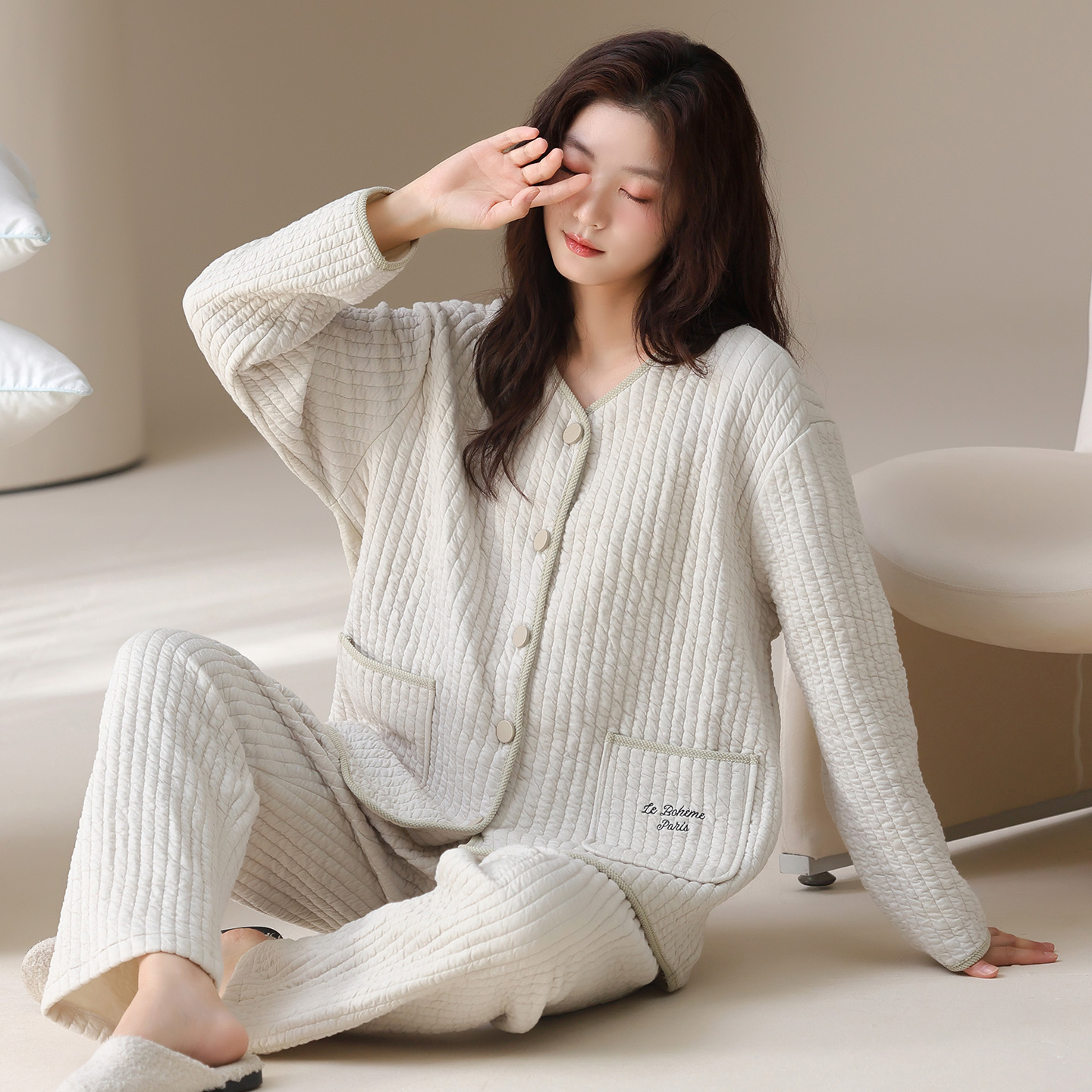25年春秋新款 红豆A类纯棉睡衣女长袖 华夫格甜美可外穿家居服套装