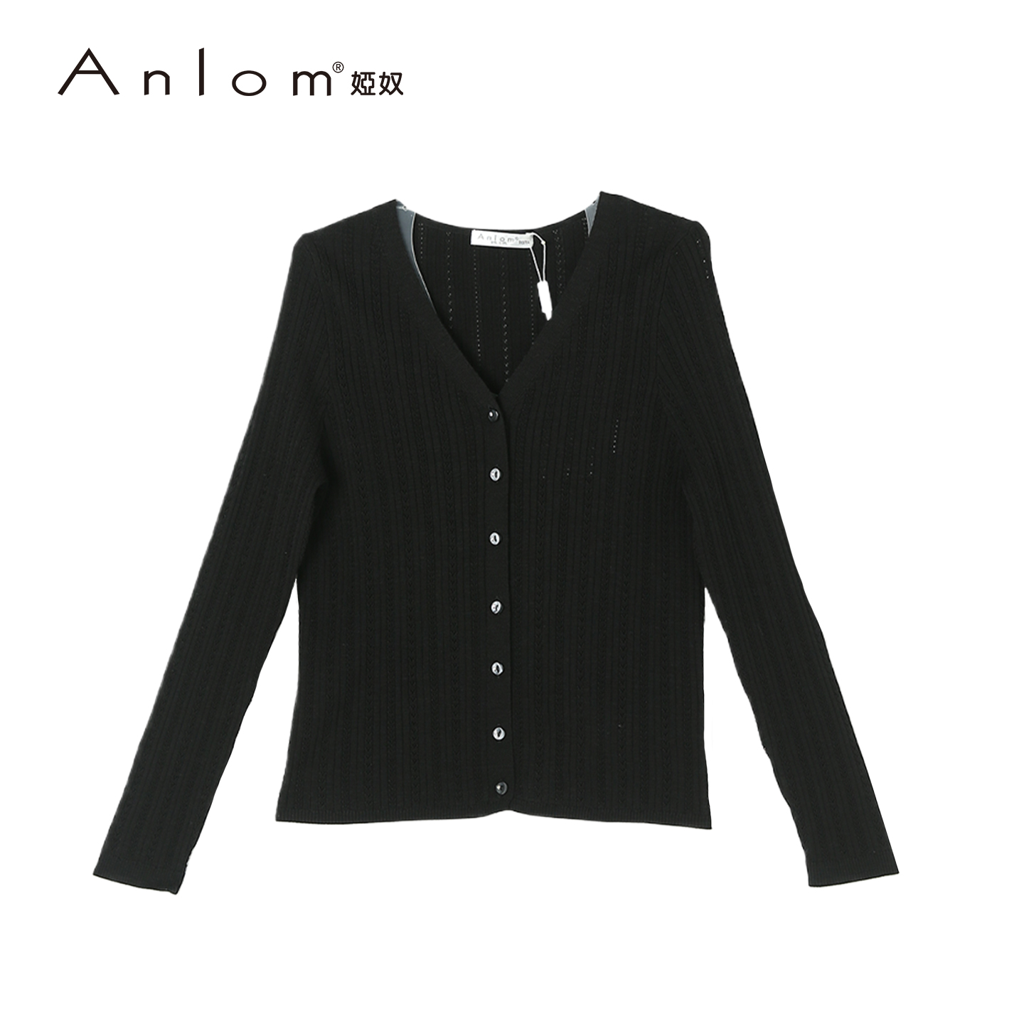 时尚 修身 针织衫 桑蚕丝秋季 套衫 V领长袖 女上衣开衫 新款