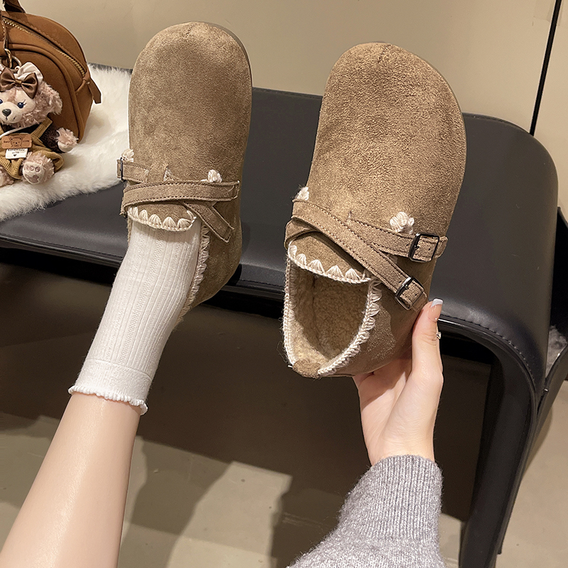 34码 加绒全包勃肯鞋 内增高厚底一脚蹬保暖豆豆棉鞋 2025新款 女冬季