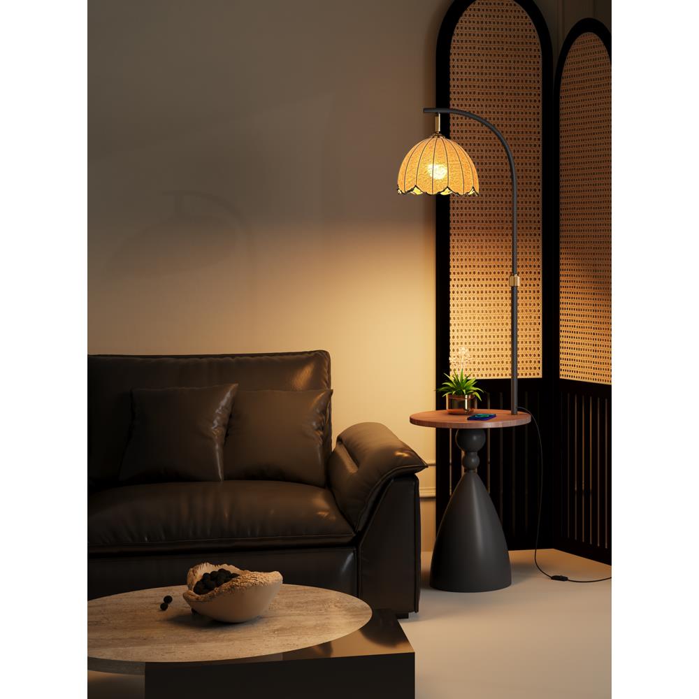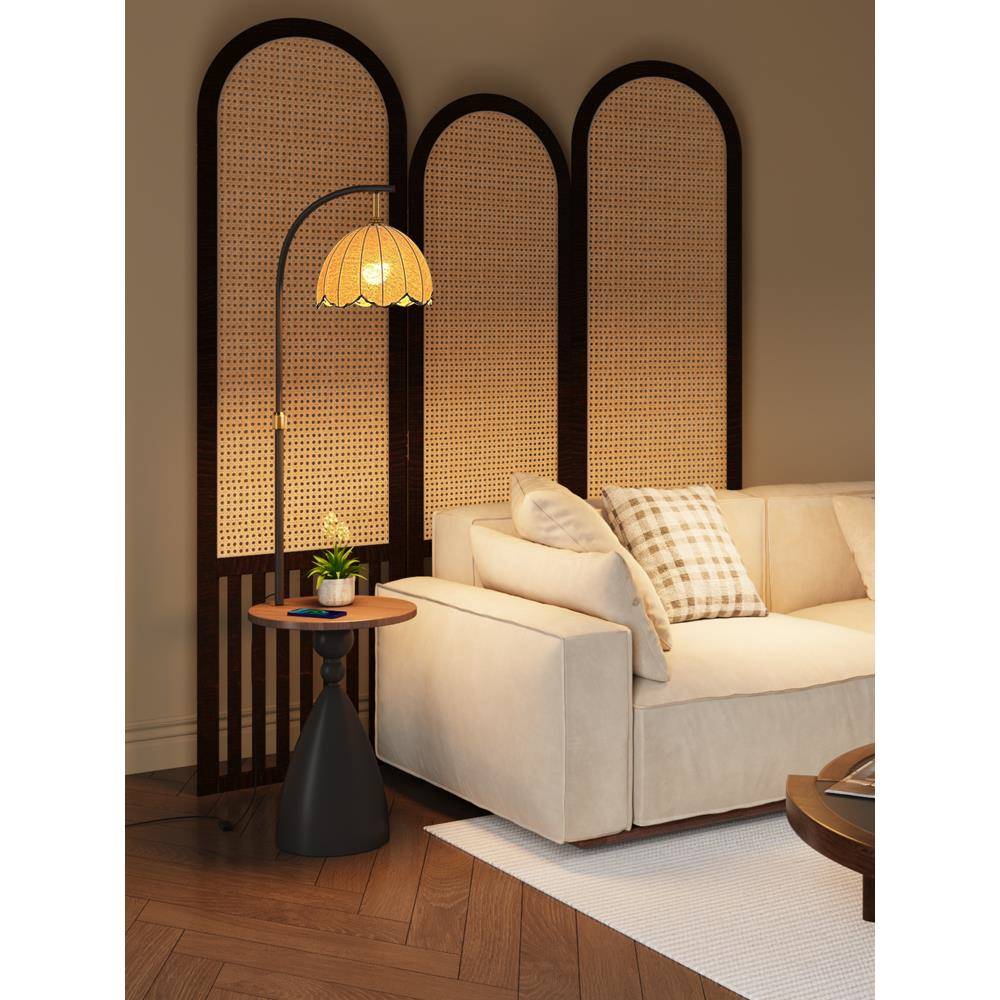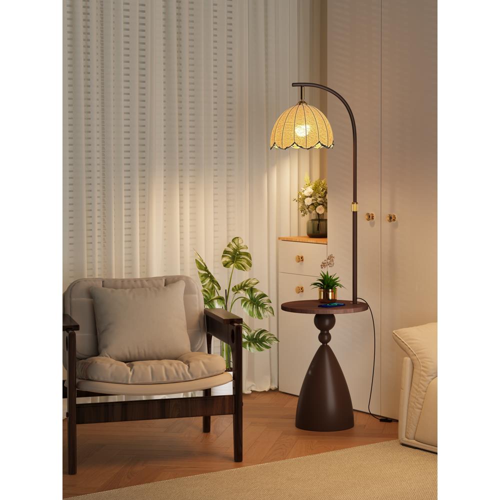 中古风网红边几落地灯客厅沙发旁装 饰置物架台灯茶几一体氛围感