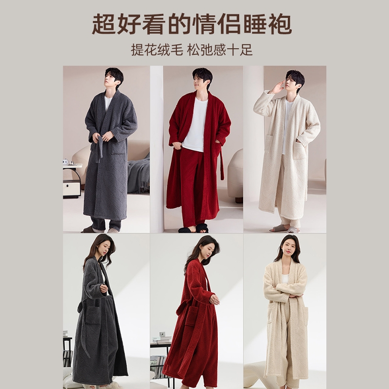 保暖家居服 睡衣浴袍加绒加厚情侣长款 睡袍情侣款 2025年秋冬款