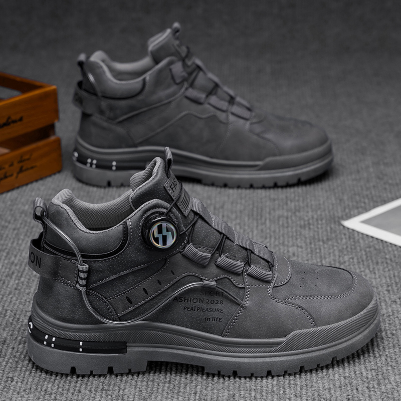 靴子 真皮防水厚底增高工装 森马马丁靴男秋季 高帮百搭休闲白色板鞋