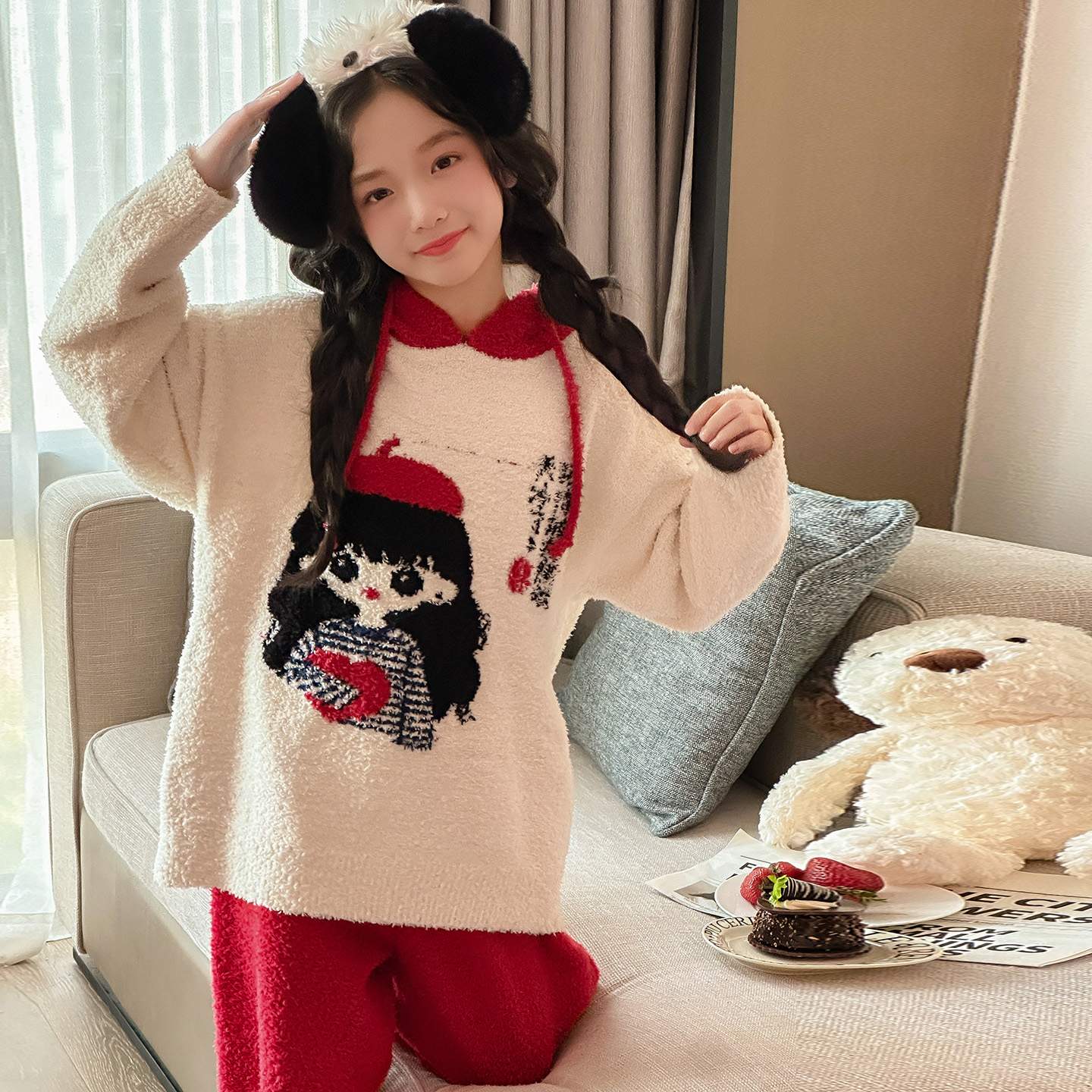 儿童家居服女孩半边绒休闲两件套可外 冬季 玉婴坊新款 女童睡衣套装