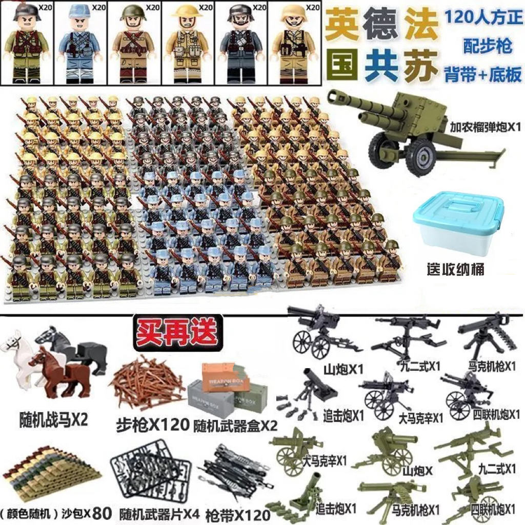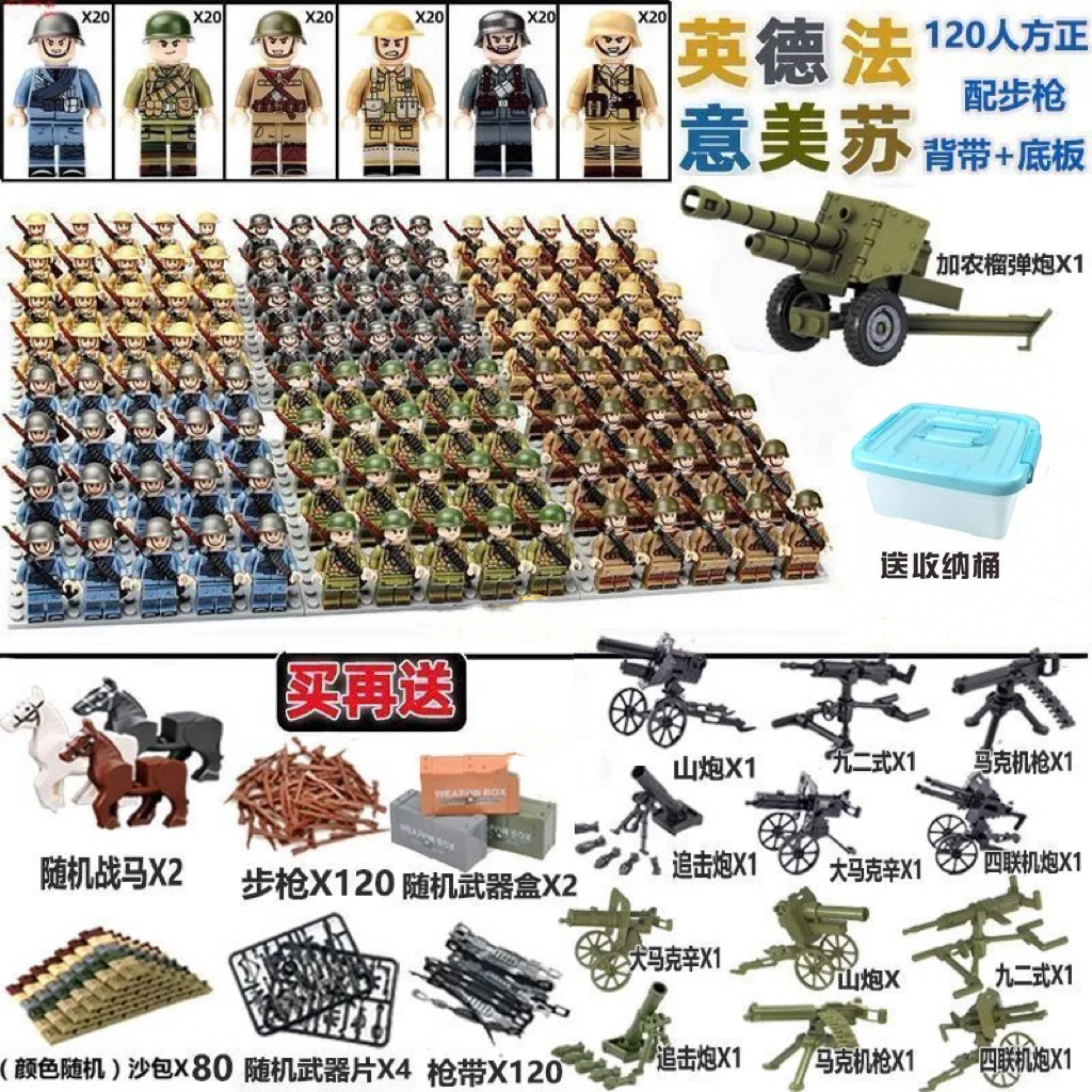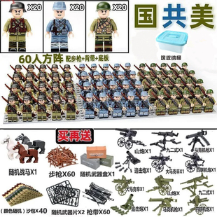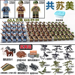 兼容乐高二战军事积木八路美德苏士兵重武器收纳桶男孩益拼装 玩具