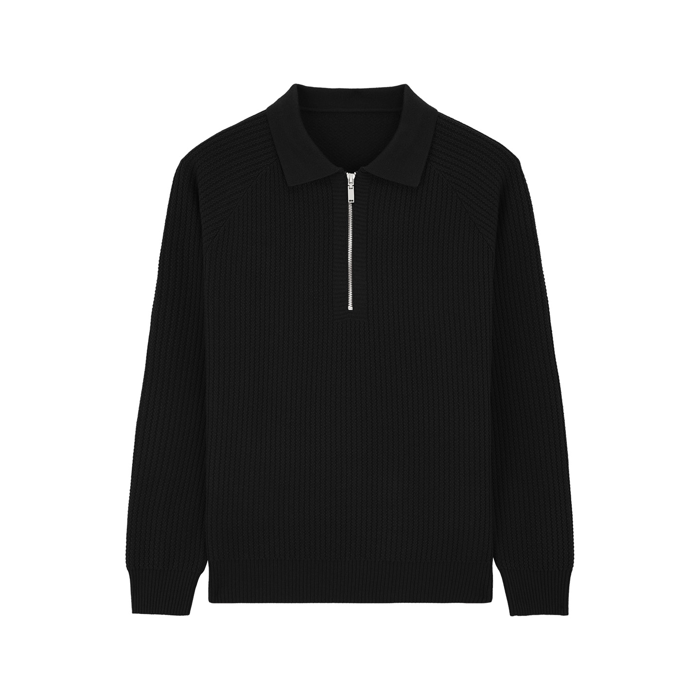 新款 HLA 25秋季 wowo熊猫翻领针织衫 黑色条纹毛衣男 海澜之家panda