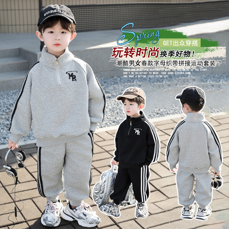 春秋网红运动女孩卫衣潮J204 2025新款 儿童休闲童春装 套装