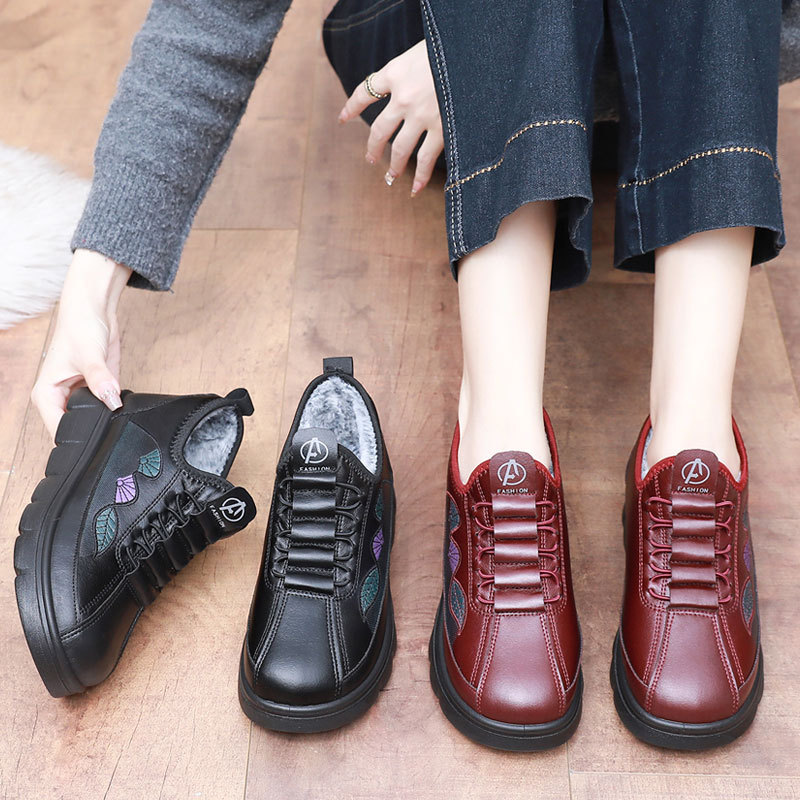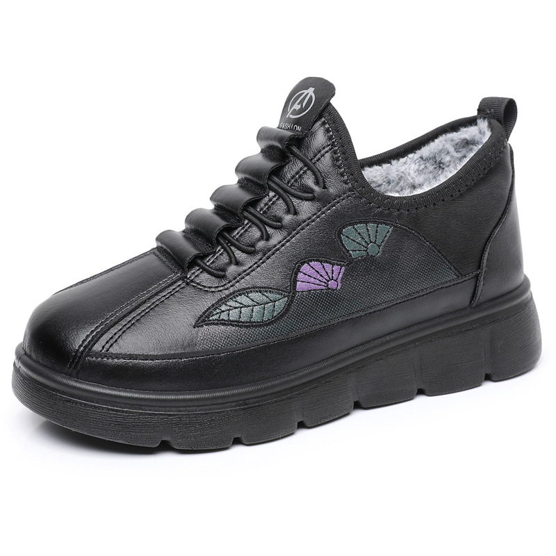 厚底防滑奶奶鞋 加绒保暖中老年人妈妈鞋 防水棉靴 老北京女棉鞋 冬季