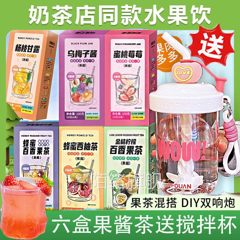 六盒果酱茶冲饮送搅拌杯水果果茶冲饮酱果酱茶小包装 杯子摇摇杯