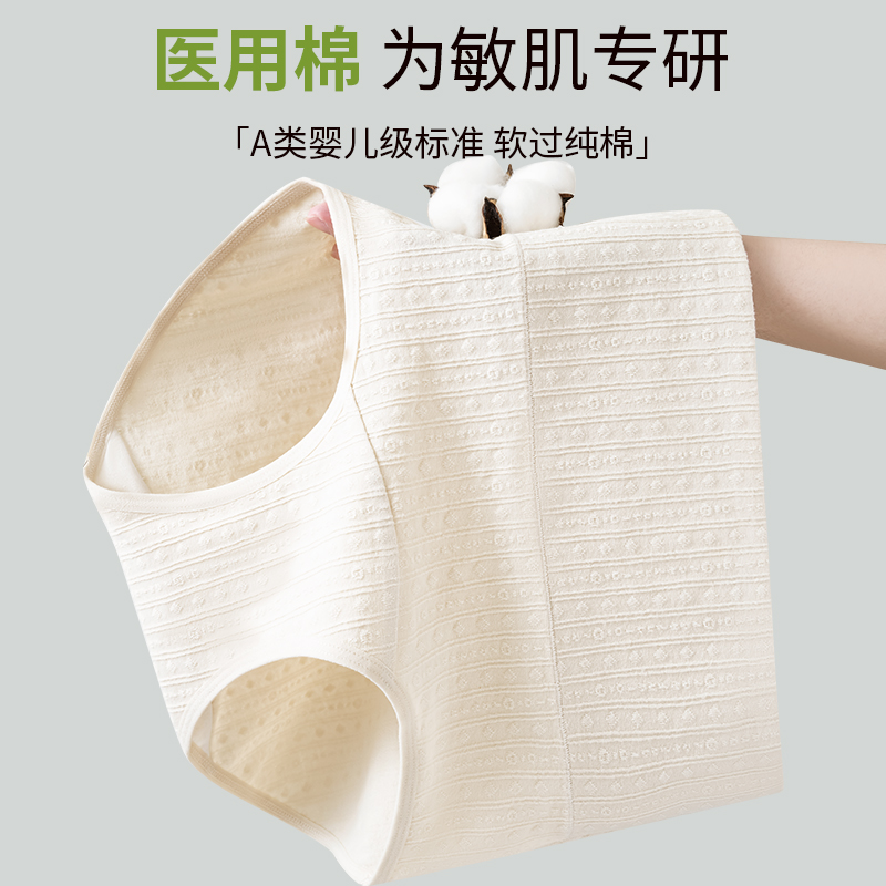 猫人纯棉平角内裤 头A 女10a级抗菌100%全棉裆透气中腰四角短裤