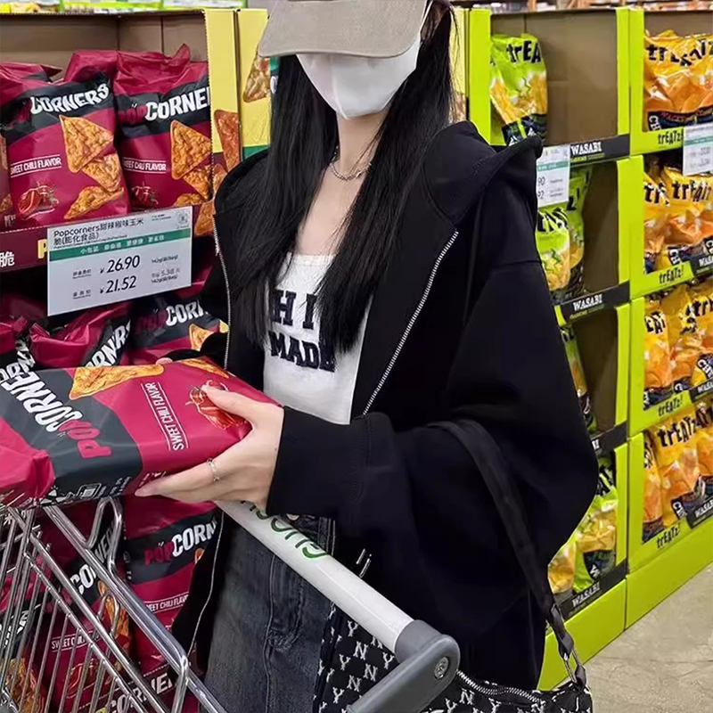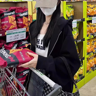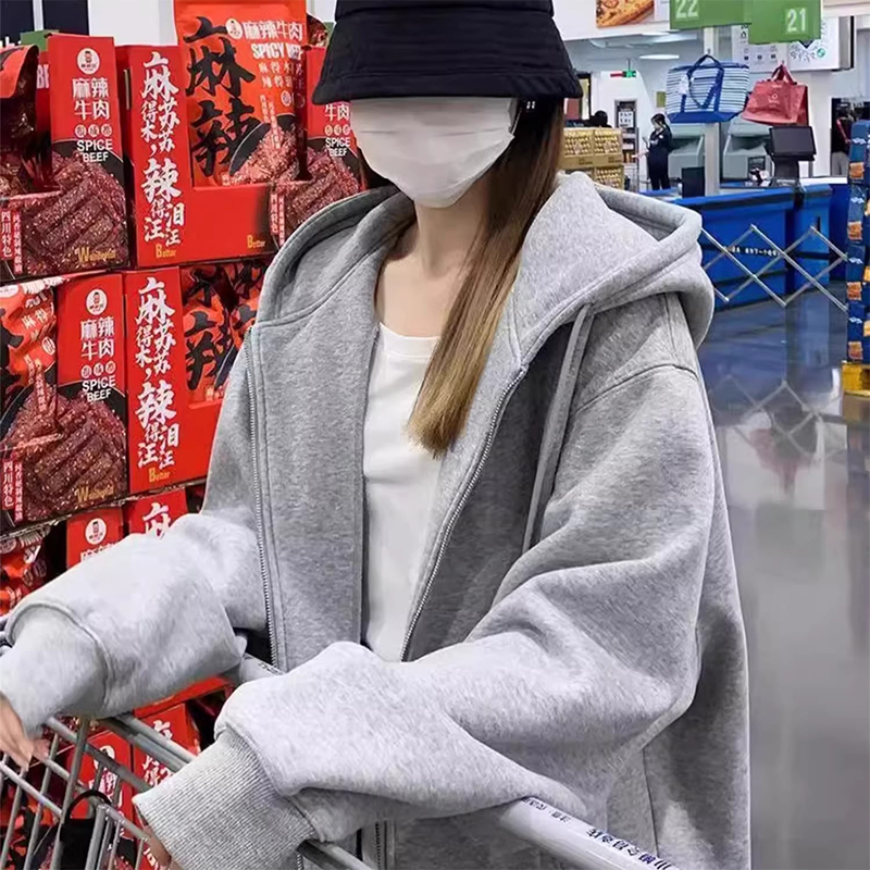 2025超火加绒韩系chic连帽开衫 胖mm宽松拉链外套潮 卫衣女秋冬大码