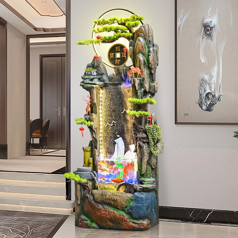 假山流水喷泉客厅循环水生财景观办公室风水轮鱼缸落地装 饰品摆件