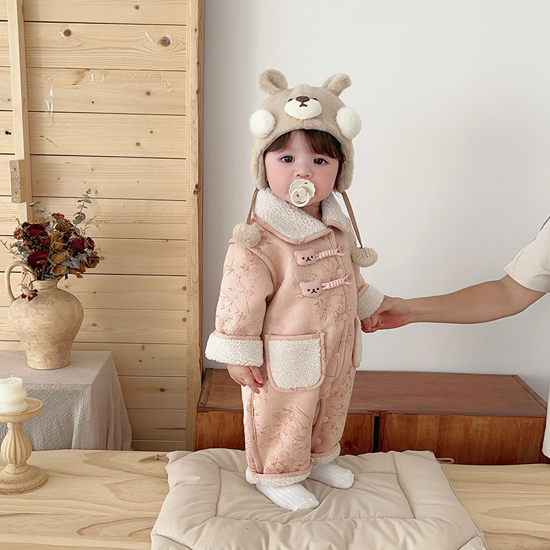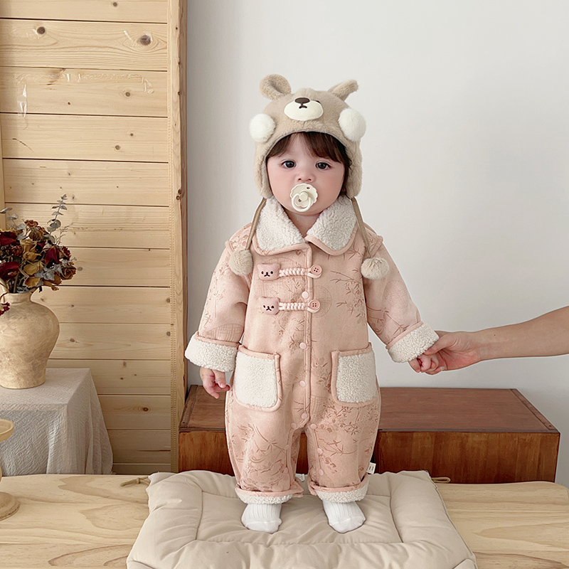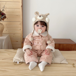 婴儿衣服冬季 女宝宝保暖连体衣可爱超萌爬爬服满月百天棉衣外出服