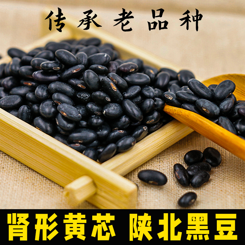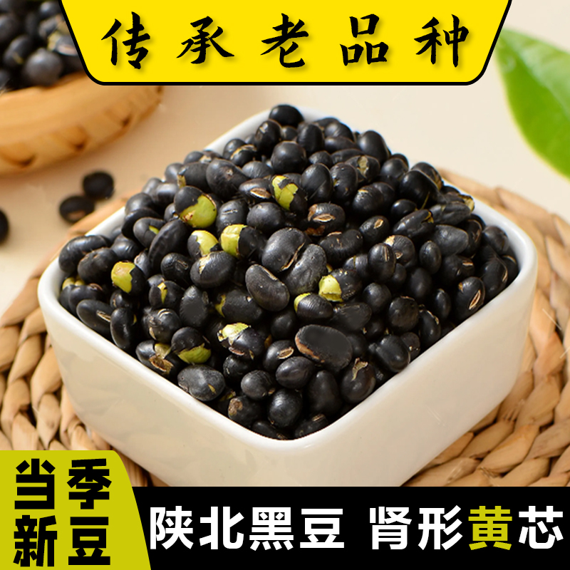 陕北老品种黄芯黑豆500g真空装 肾型黄心发芽打浆五谷杂粮小黑豆