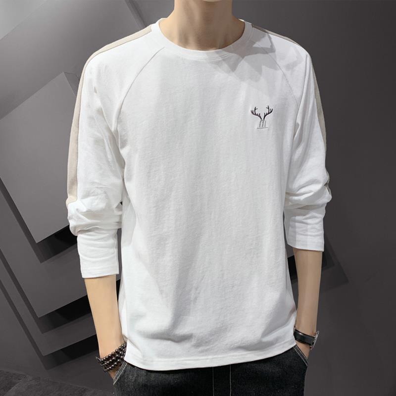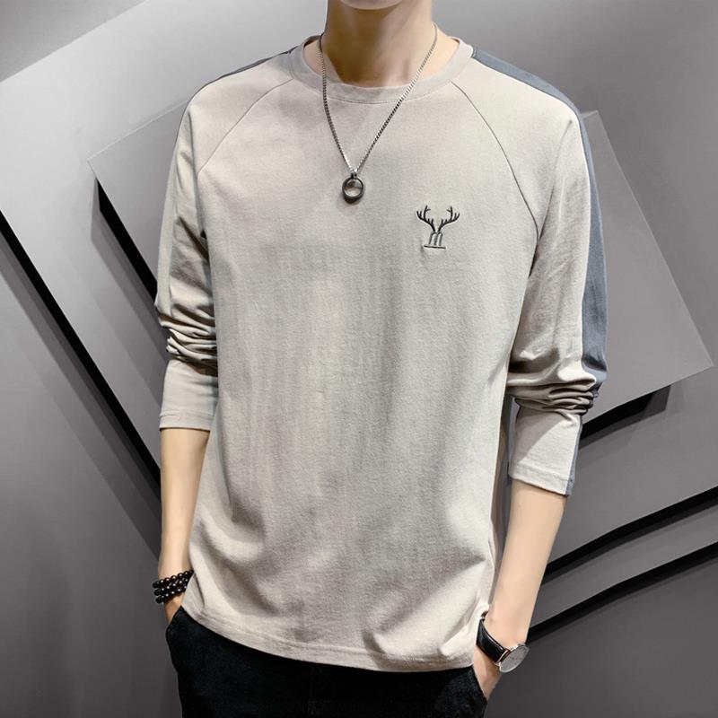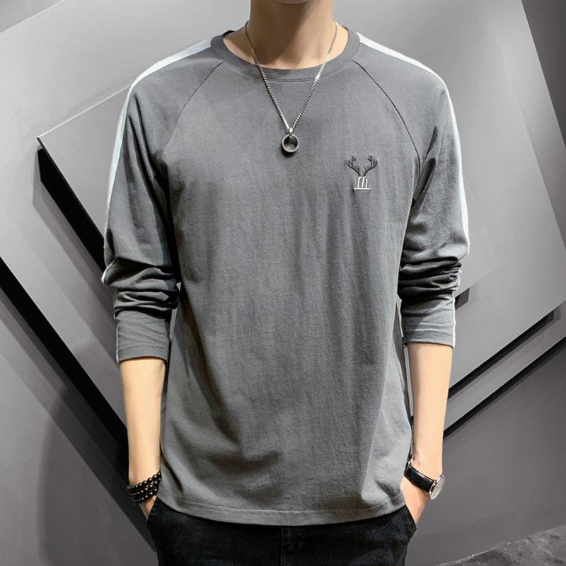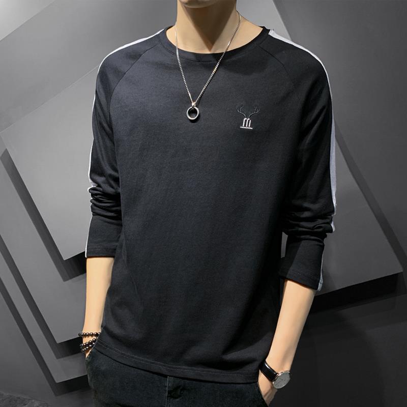 ins圆领上衣服t 内搭打底衫 潮牌宽松无帽卫衣男春秋季 重磅纯色长袖