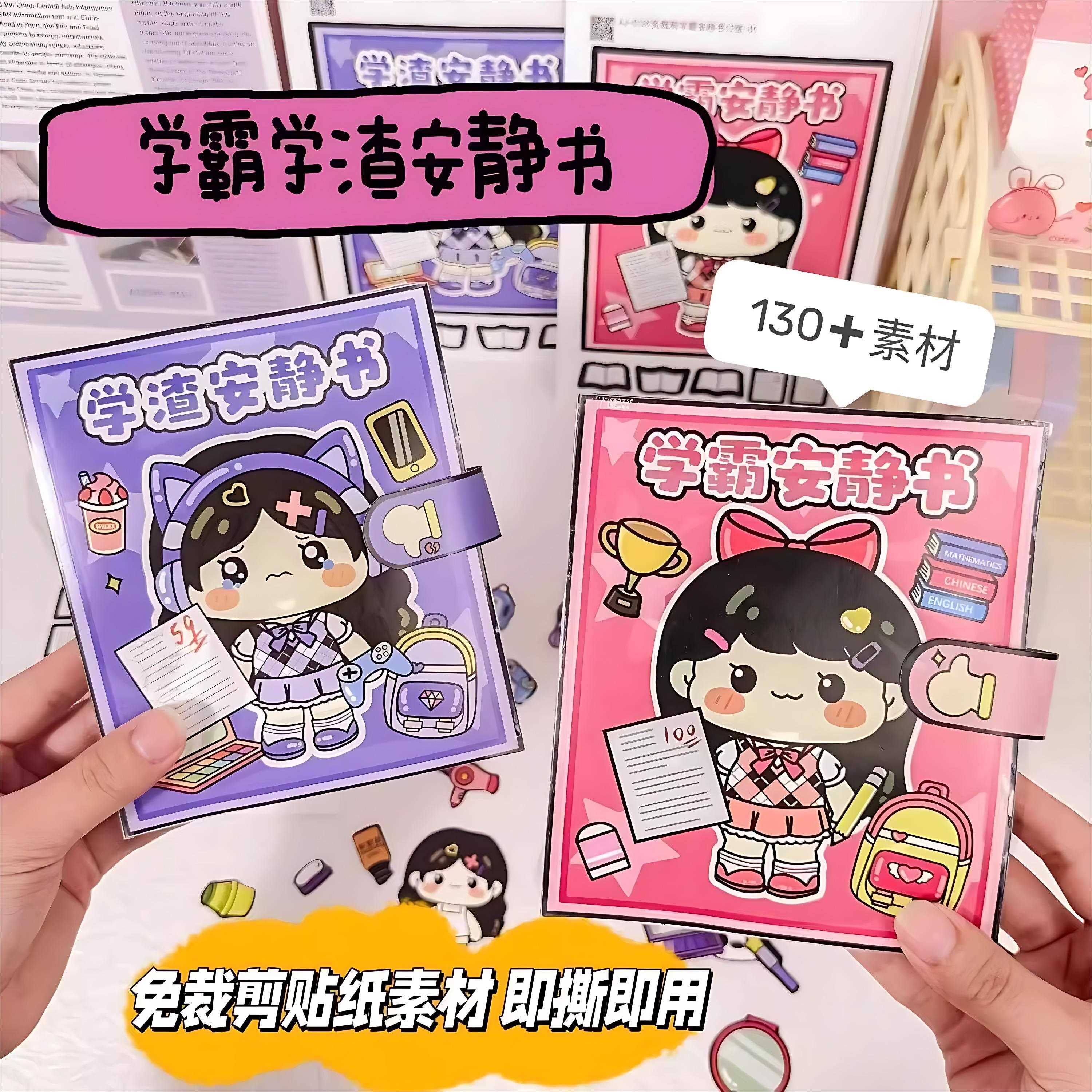 免裁剪爆款 学霸学渣安静书校园可爱纪念贴纸捏捏乐豆豆本解压玩具