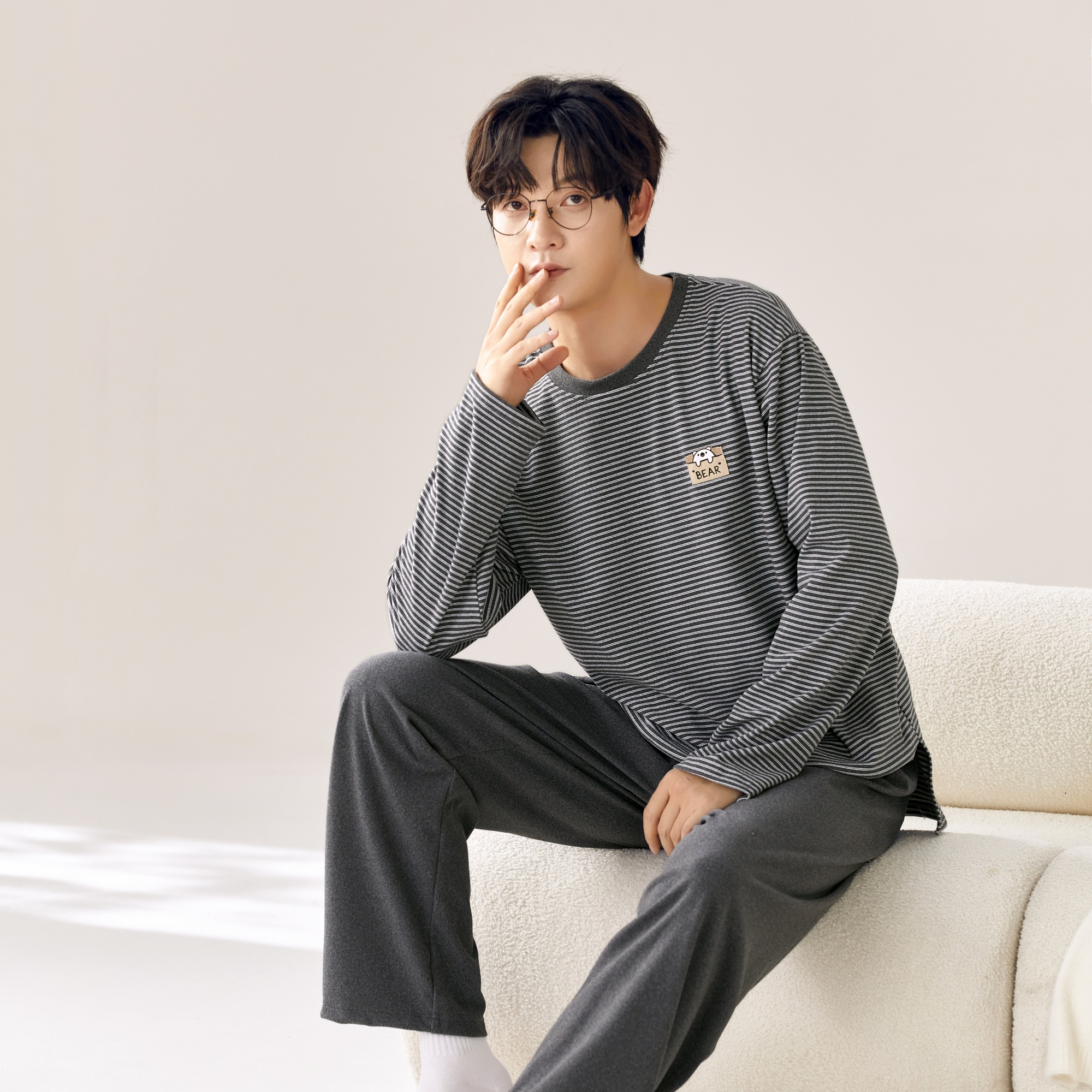 Q006 舒适休闲简约宽松纯色家居服套装 M006 长袖 馨源世家情侣款