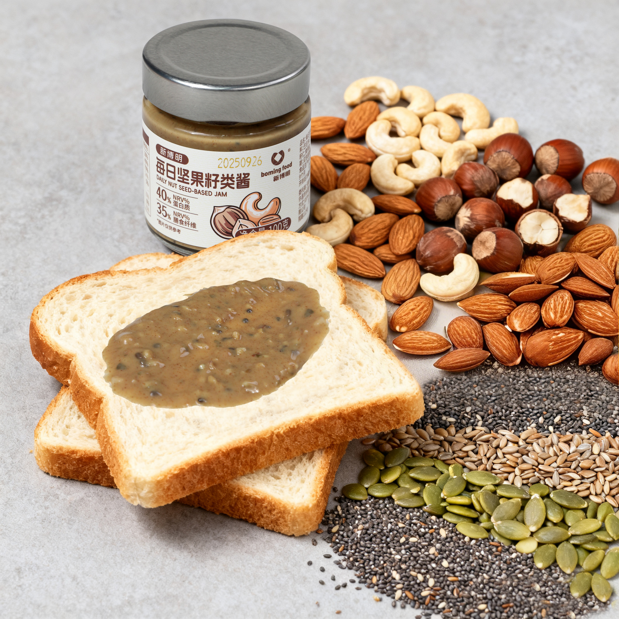 新博明每日坚果籽类酱混合研磨开心果坚果酱奇亚籽涂抹面包拌沙拉