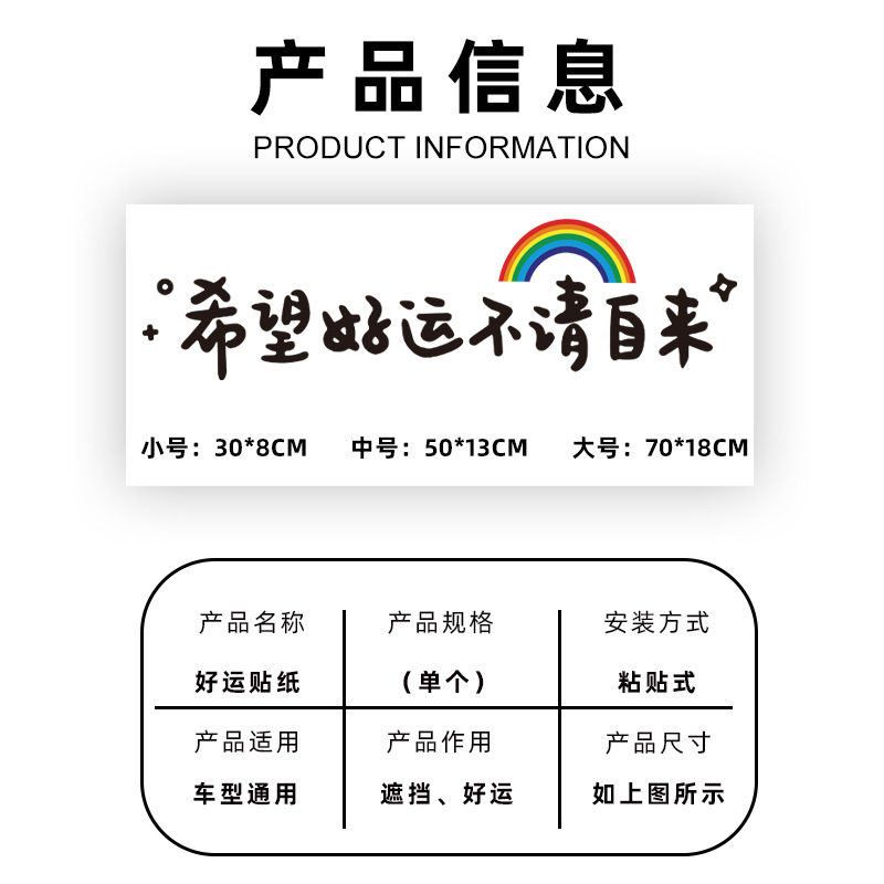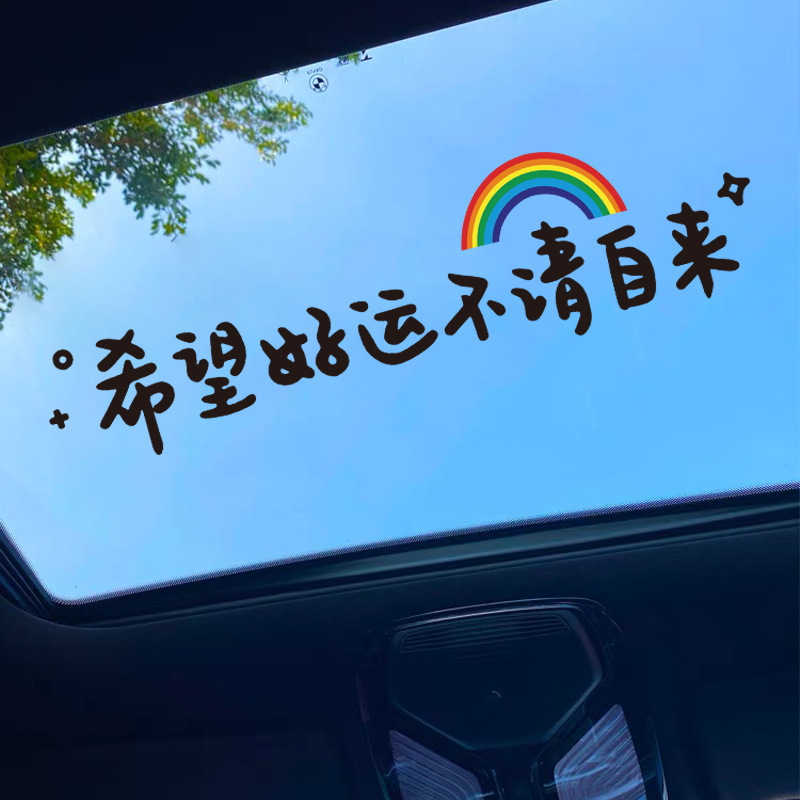 希望好运不请自来天窗车贴快乐治愈文字镜子创意车身汽车装 饰贴纸