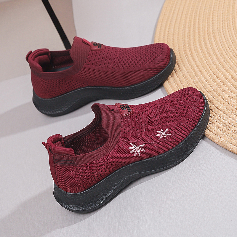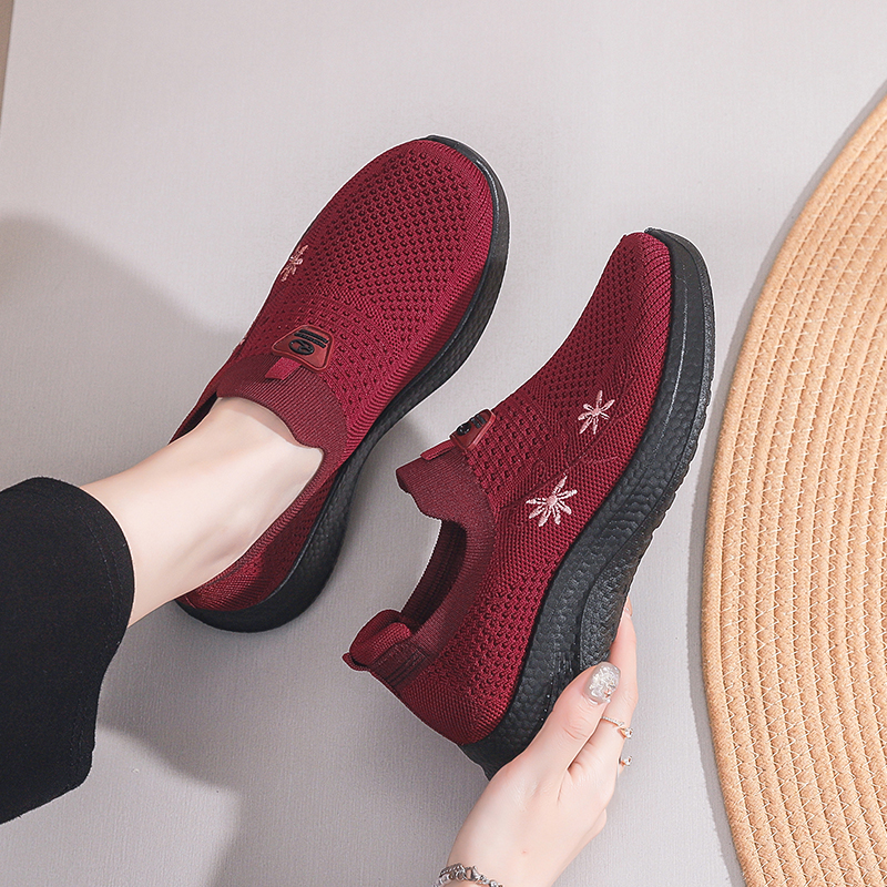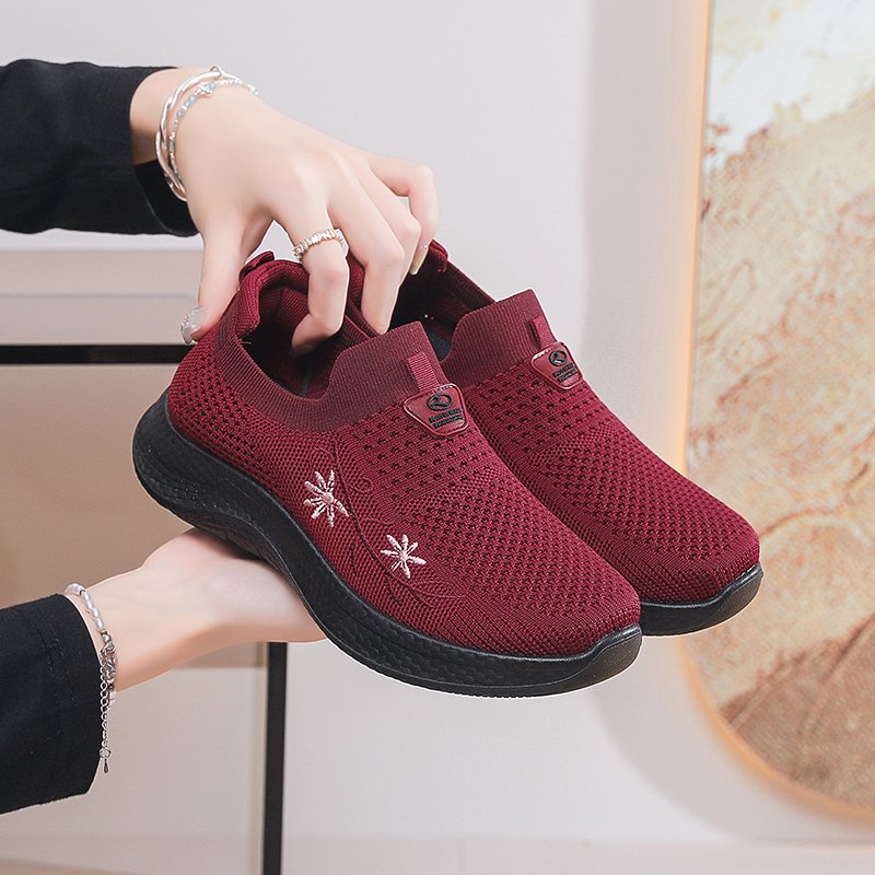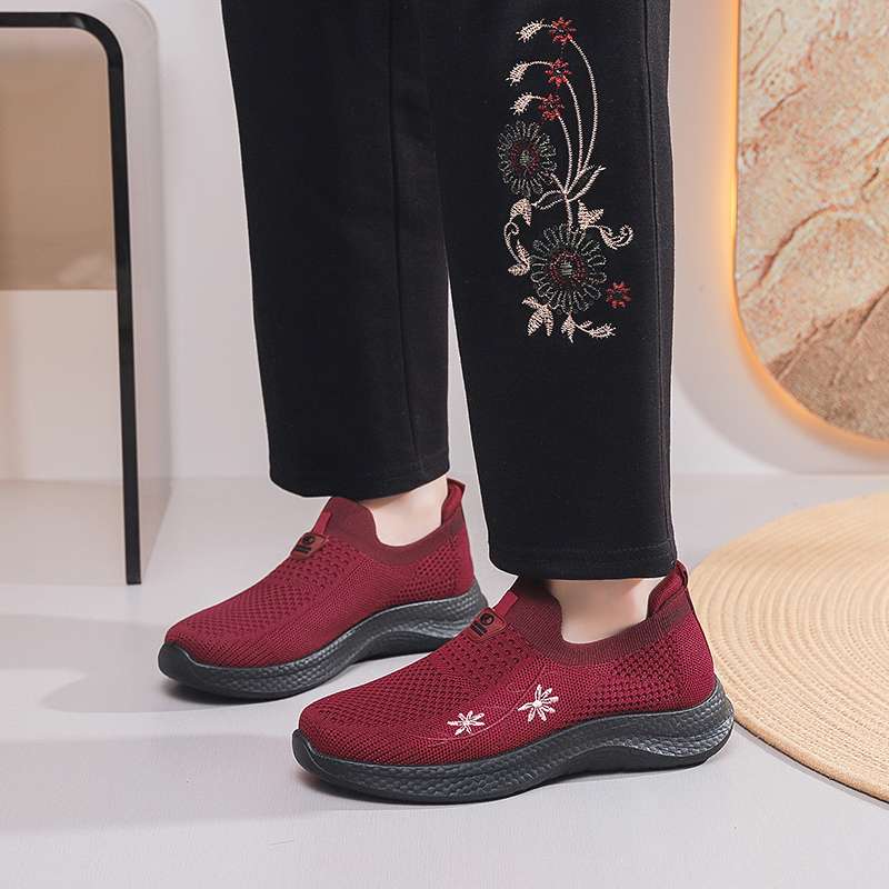 老北京布鞋 奶奶鞋 妈妈鞋 软底轻便防滑酒红色老年鞋 子女 秋季 老人鞋