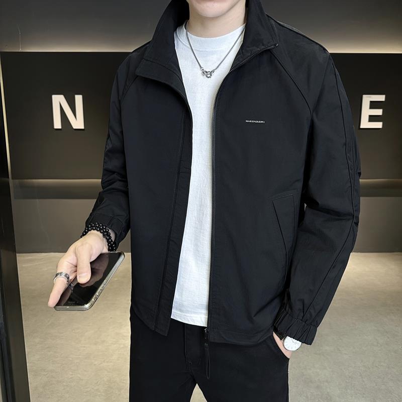 JEEP吉普运动外套男宽松2025春秋新款 休闲百搭纯色立领上衣夹克男