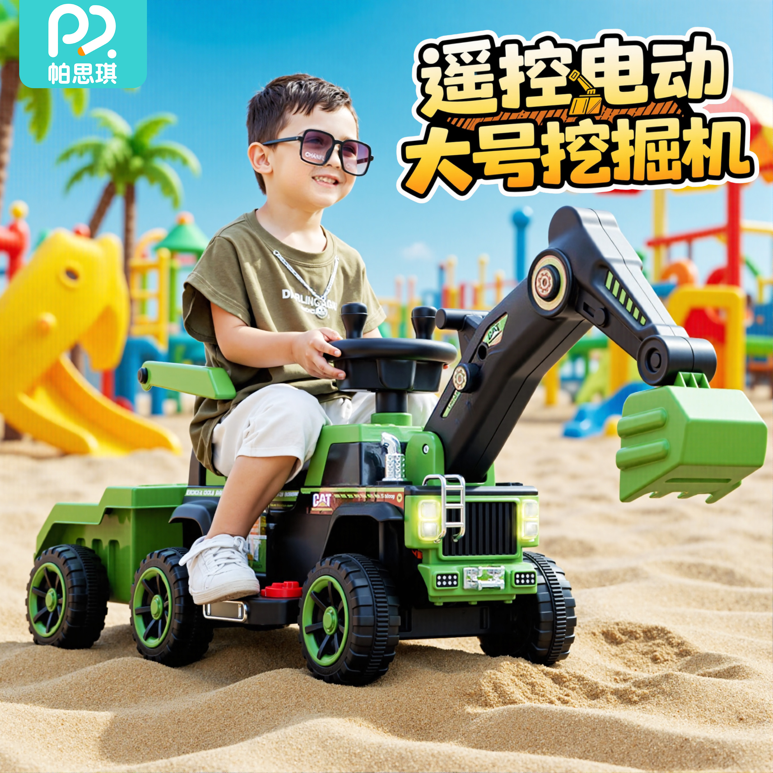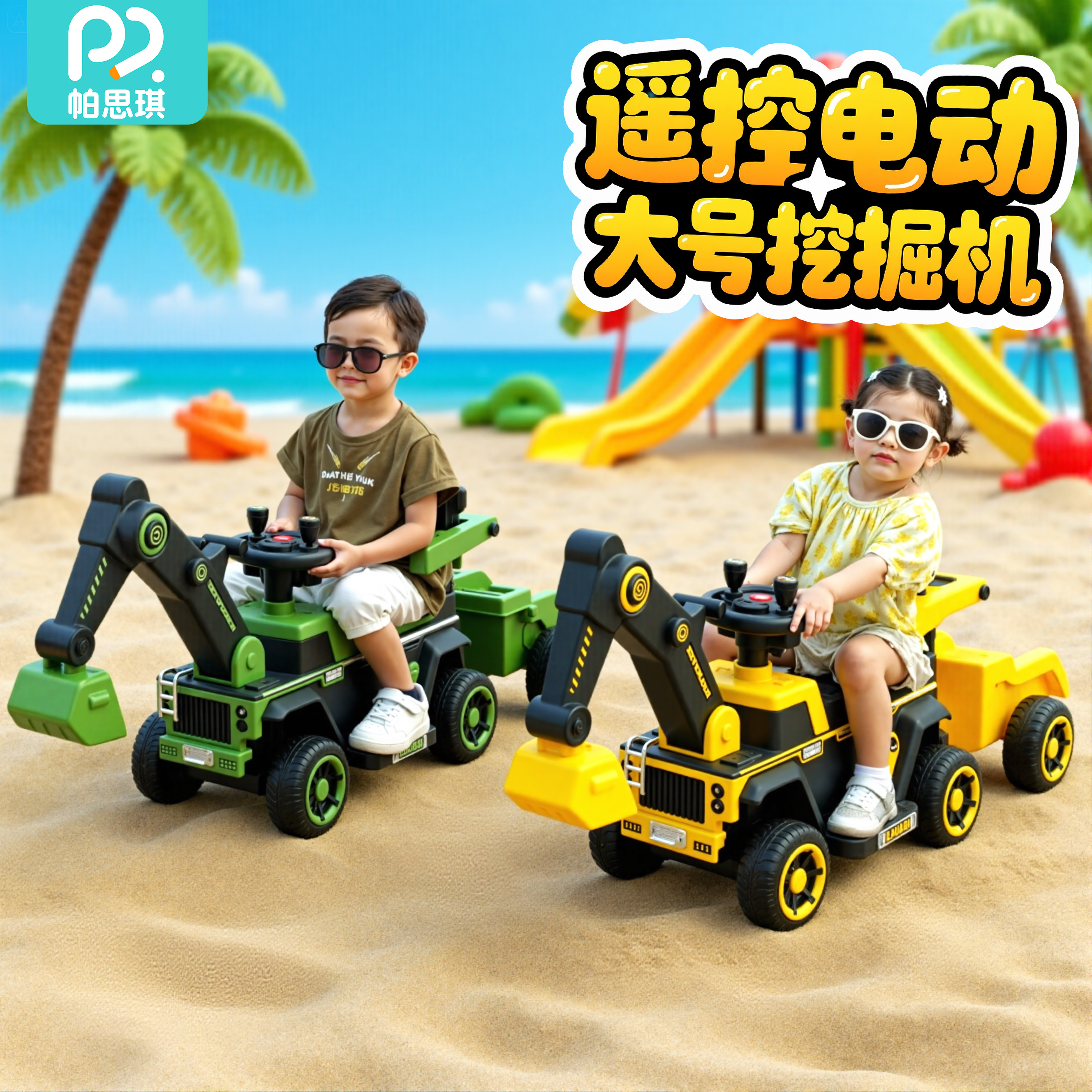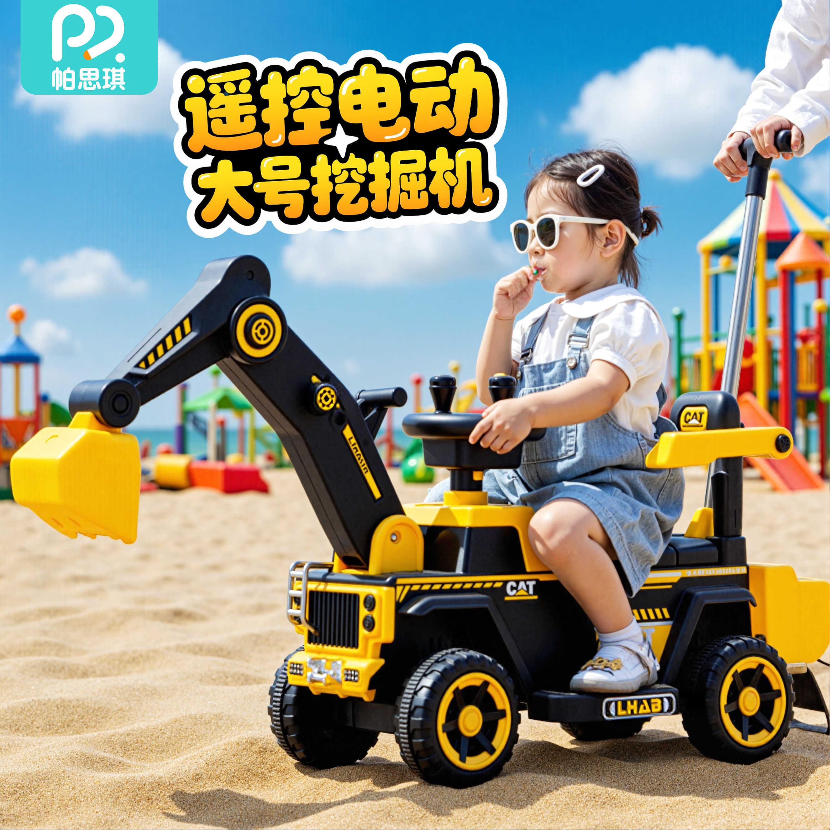 挖掘机儿童遥控车玩具可坐人男女孩子四驱越野大号电动充电挖土机