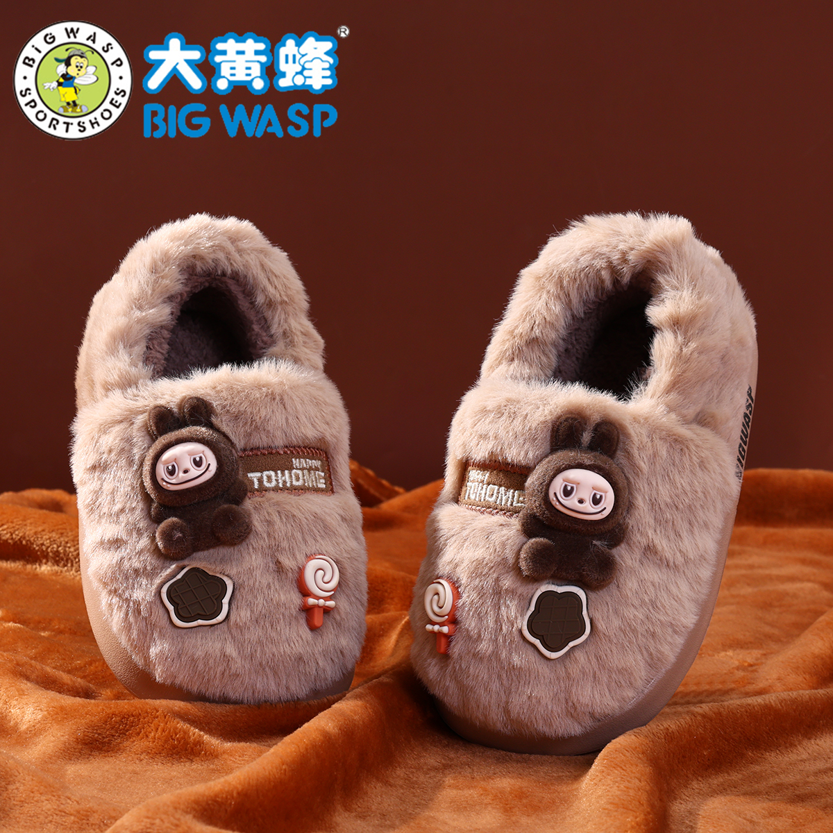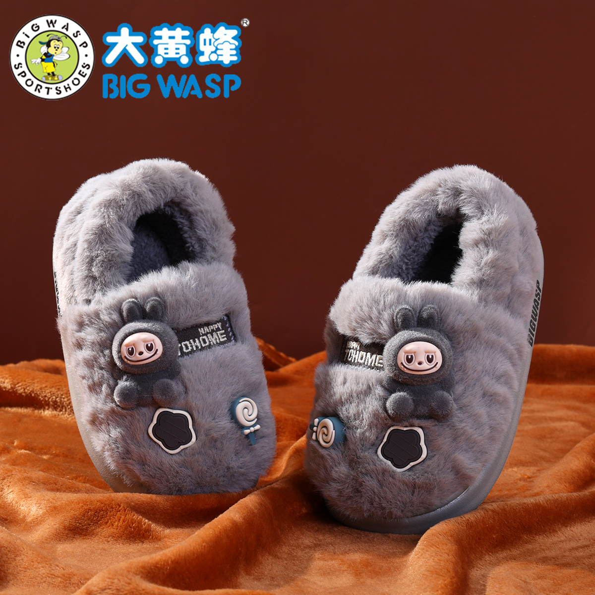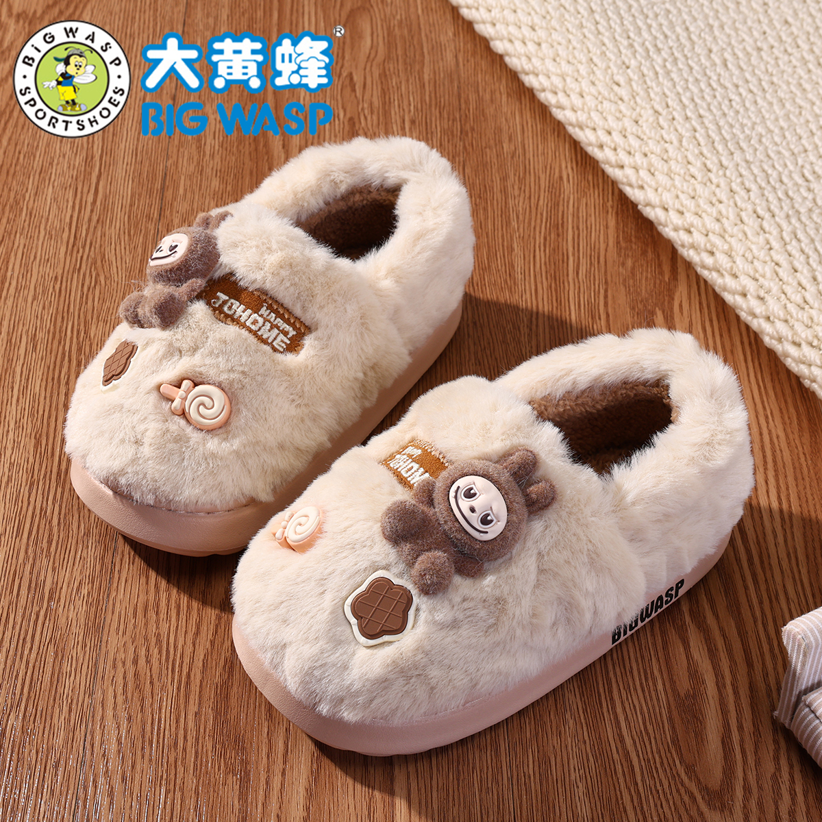 女童新款 防滑室内加绒保暖女孩加厚冬季 男童棉鞋 大黄蜂儿童棉拖鞋