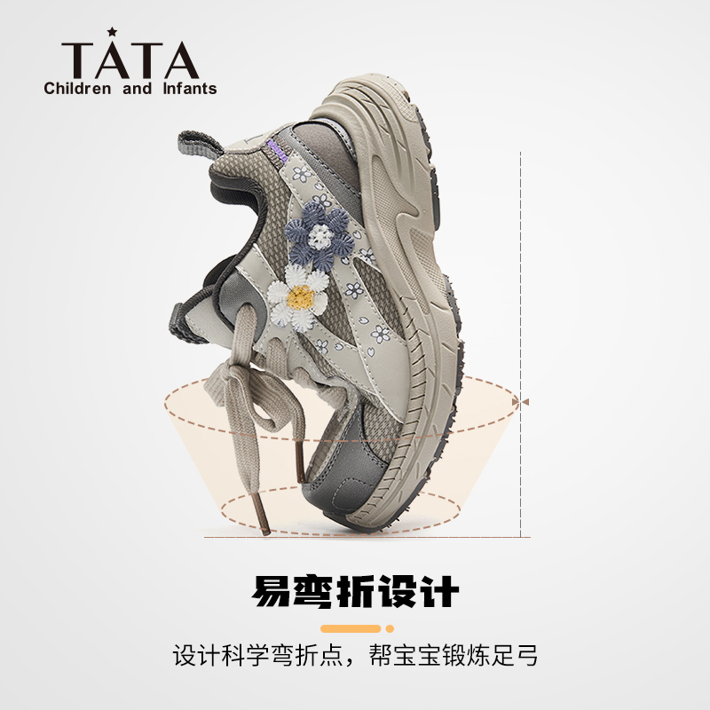 儿童户外休闲鞋 轻便减震跑鞋 2025秋季 女童防滑老爹鞋 新款 TATA童鞋