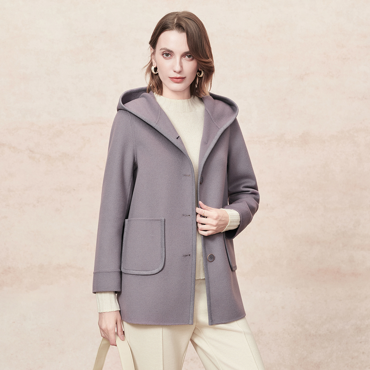 圆领大衣女小个子气质毛呢外套 高端羊毛双面呢短款 2025年春季 新款