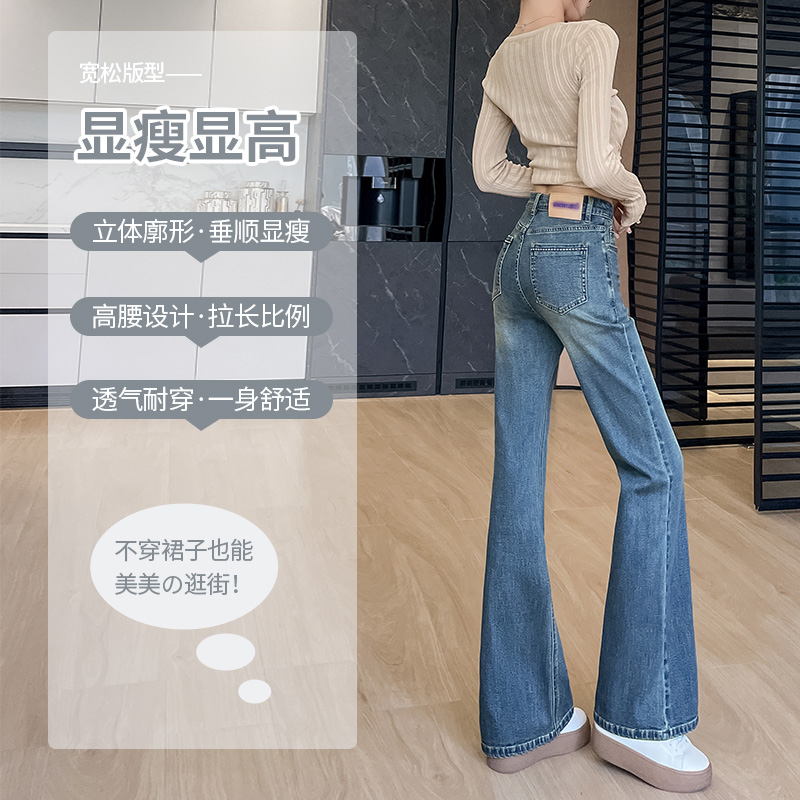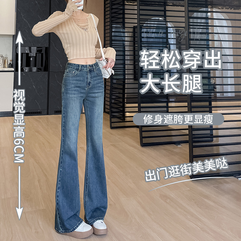 女2025秋季 辣妹喇叭裤 新款 百搭时尚 子 韩版 蓝色高腰显瘦微喇牛仔裤