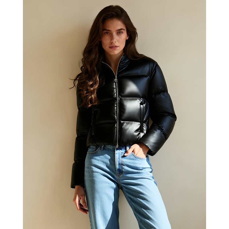 PU皮抗风立领保暖拉链羽绒服外套144 美式 5240 25秋冬新款 AF女装