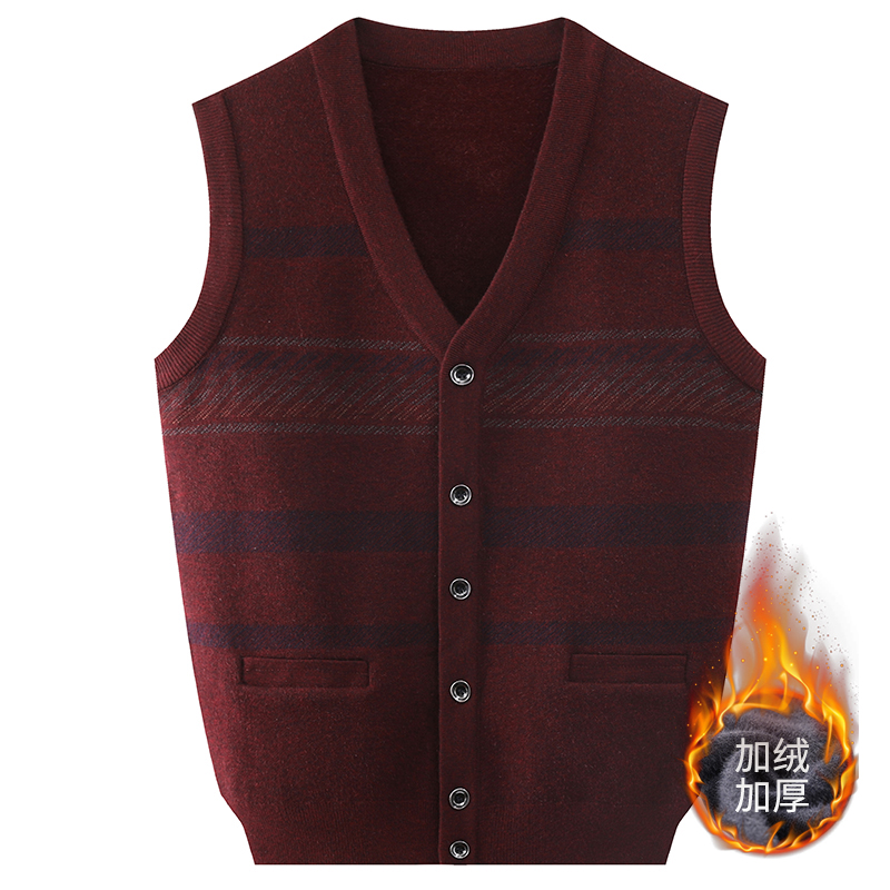 毛衣男款 皮尔卡丹针织马甲背心男秋冬季 加绒加厚爸爸中老年男开衫