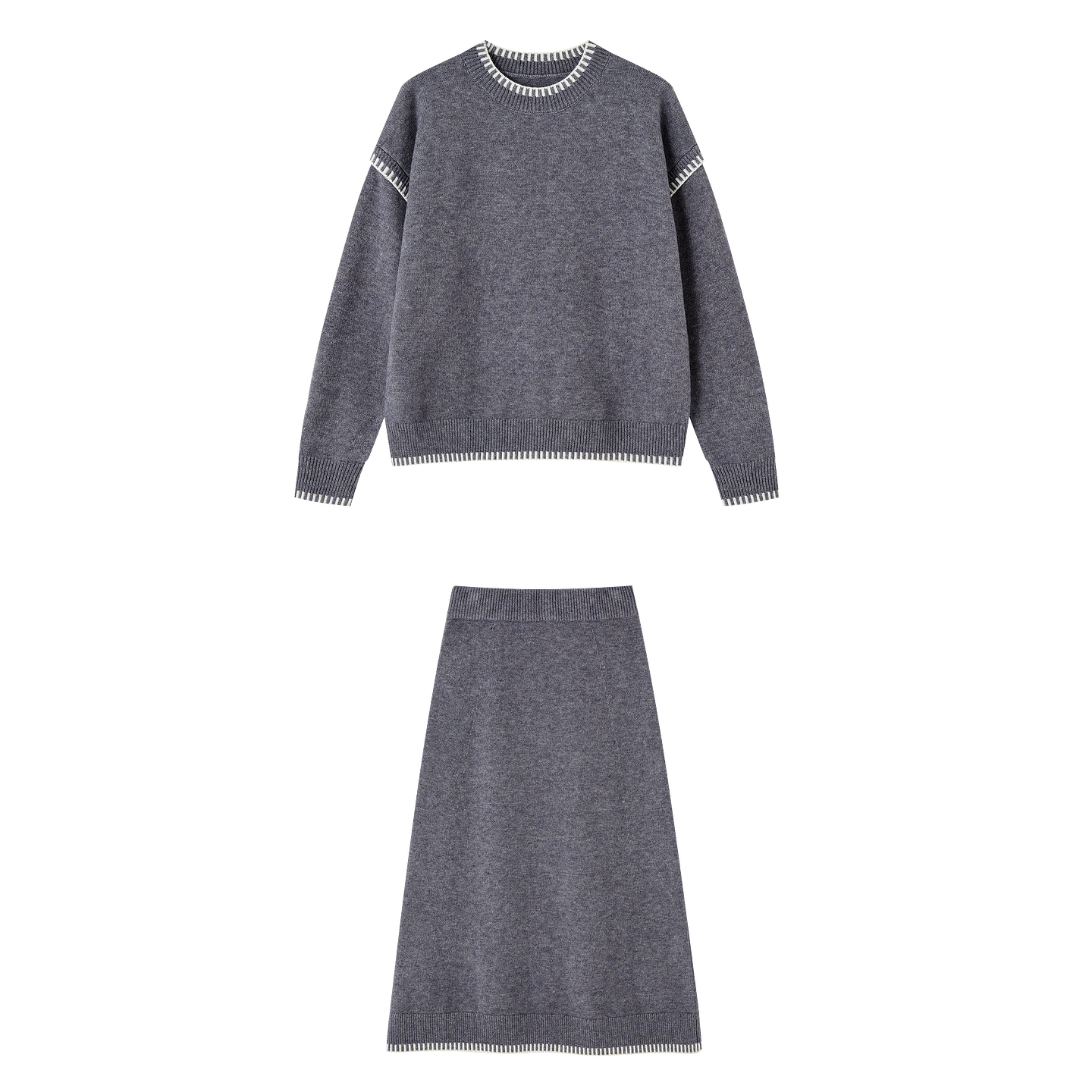 撞色圆领上衣气质半裙两件套 新款 德玛纳优雅通勤针织套装 女25冬季