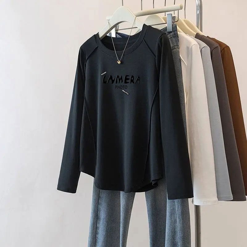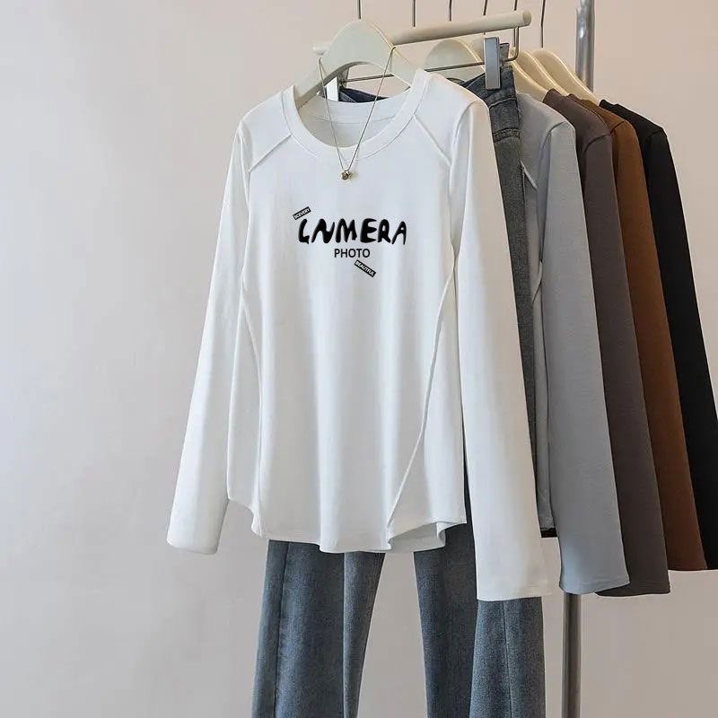 2025春秋新款 秋季 纯棉T恤长袖 女装 印花显瘦休闲内搭上衣 打底大码