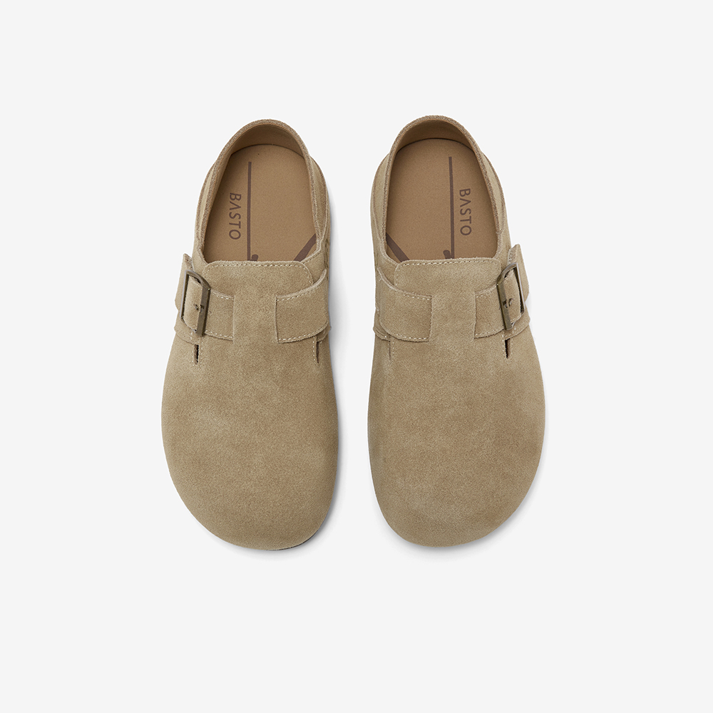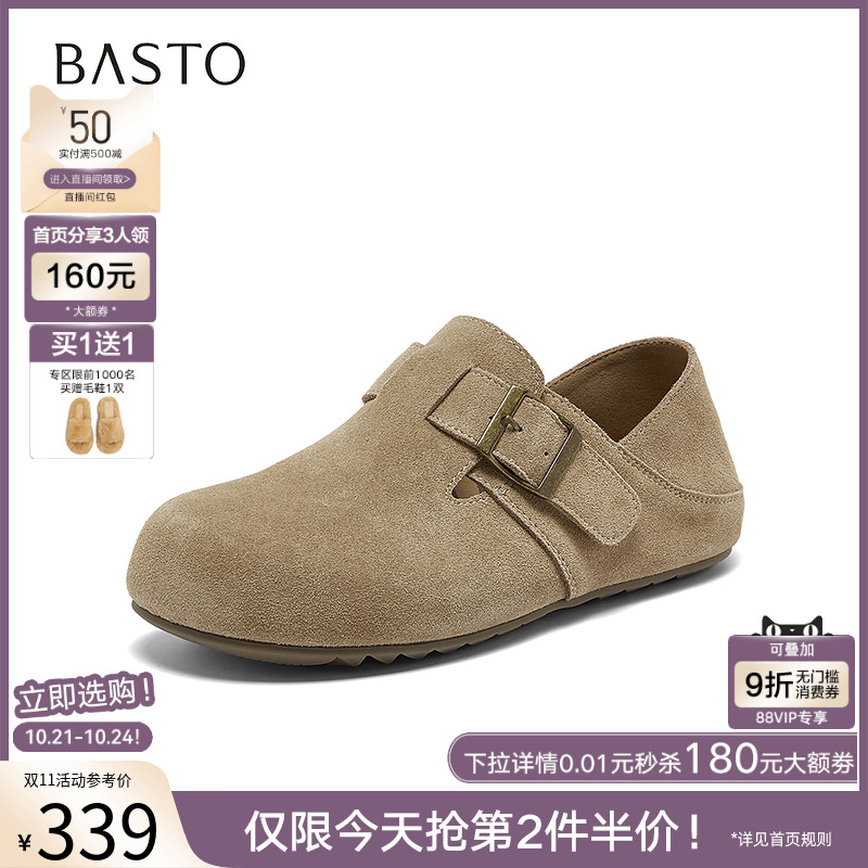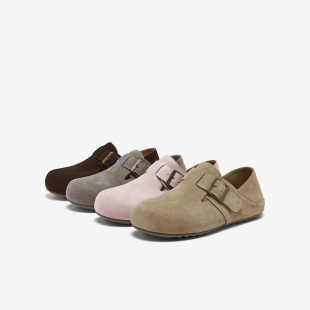 复古休闲女懒人单鞋 真皮魔术贴勃肯鞋 W5106AM6 新款 百思图2025秋季