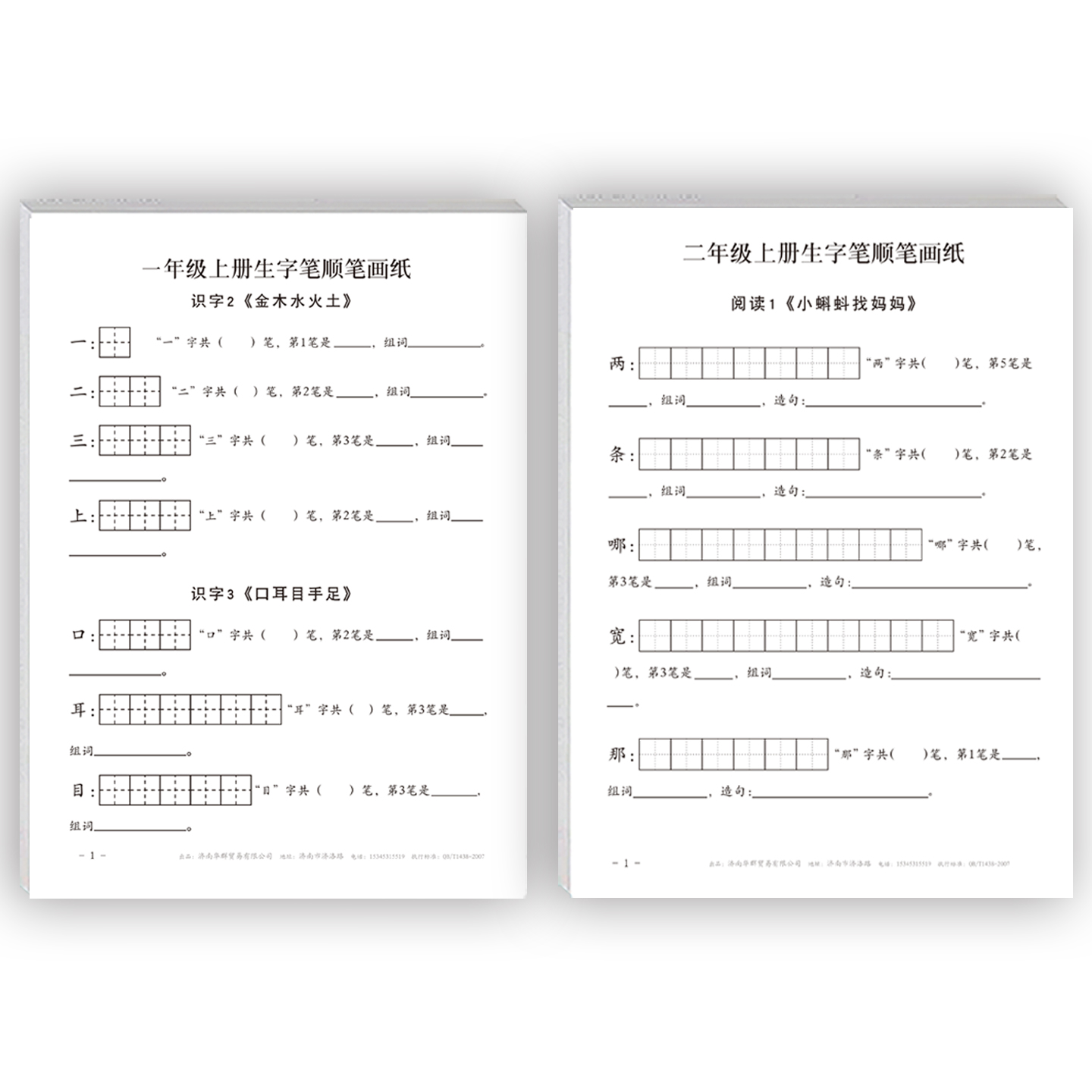 一年级上册下册二年级上册生字笔顺笔画纸生字注音打卡纸每日练语文人教版 课文同步生字写字表一类字二类字