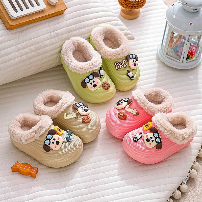 室内防水加绒卡通保暖可外穿宝宝拖鞋 冬季 男童2025新款 儿童棉拖鞋