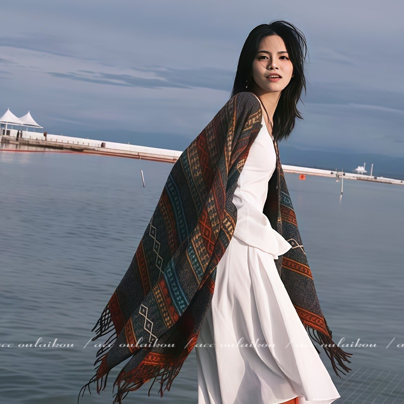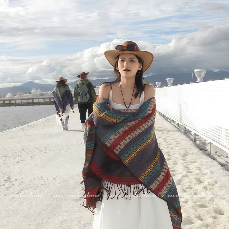 包配件拎环 民族风针织披肩女外搭旅游拍照流苏斗篷大披风氛围感