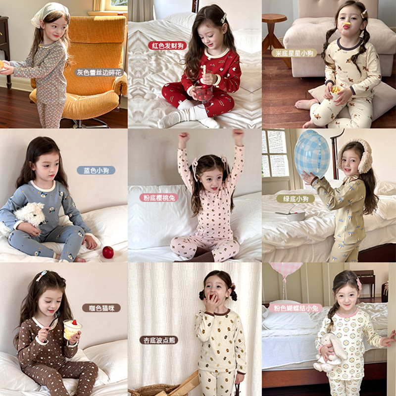 保暖内衣家居服 无骨秋衣秋裤 女童棉质A类宝宝套装 儿童睡衣秋冬装