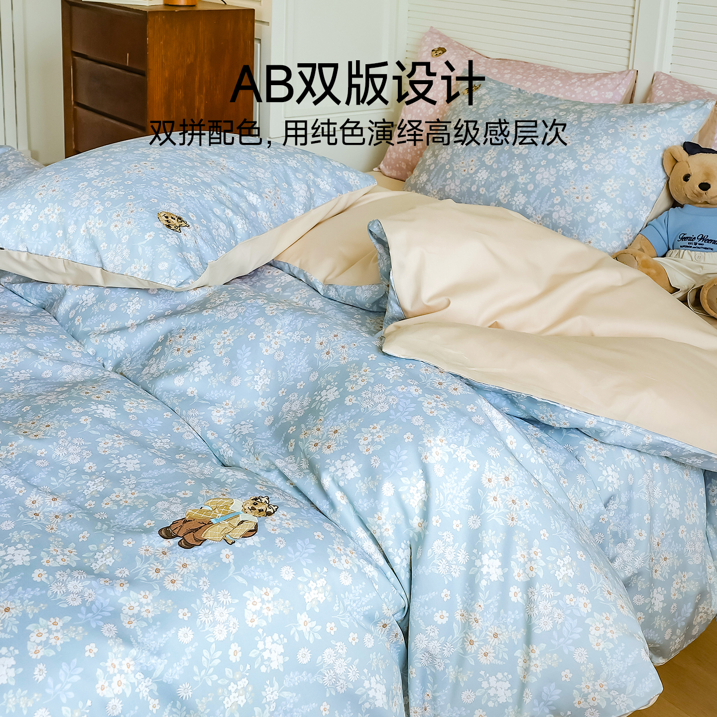TeenieWeenie小熊全棉四件套碎花刺绣纯棉 胡可直播间