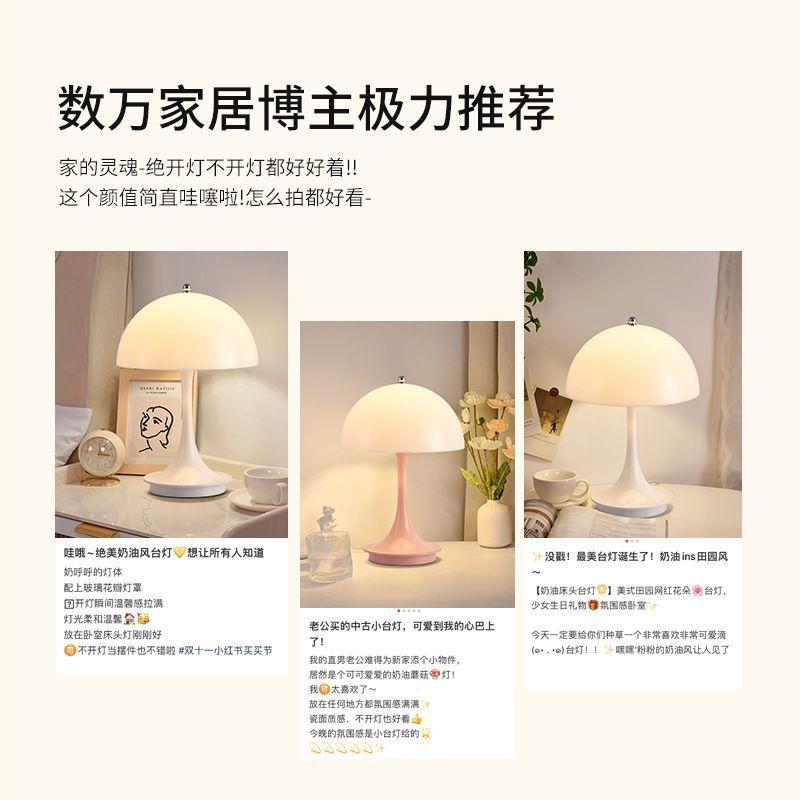 卧室床头台灯风复古蘑菇灯轻奢高级感氛围桌面可充电台灯夜灯