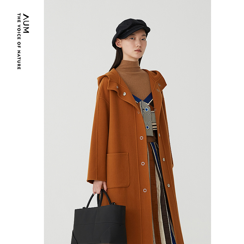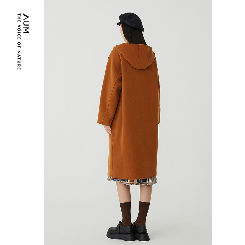 焦糖棕色简约连帽双面呢大衣外套 AUM噢姆冬季 会员价1420元